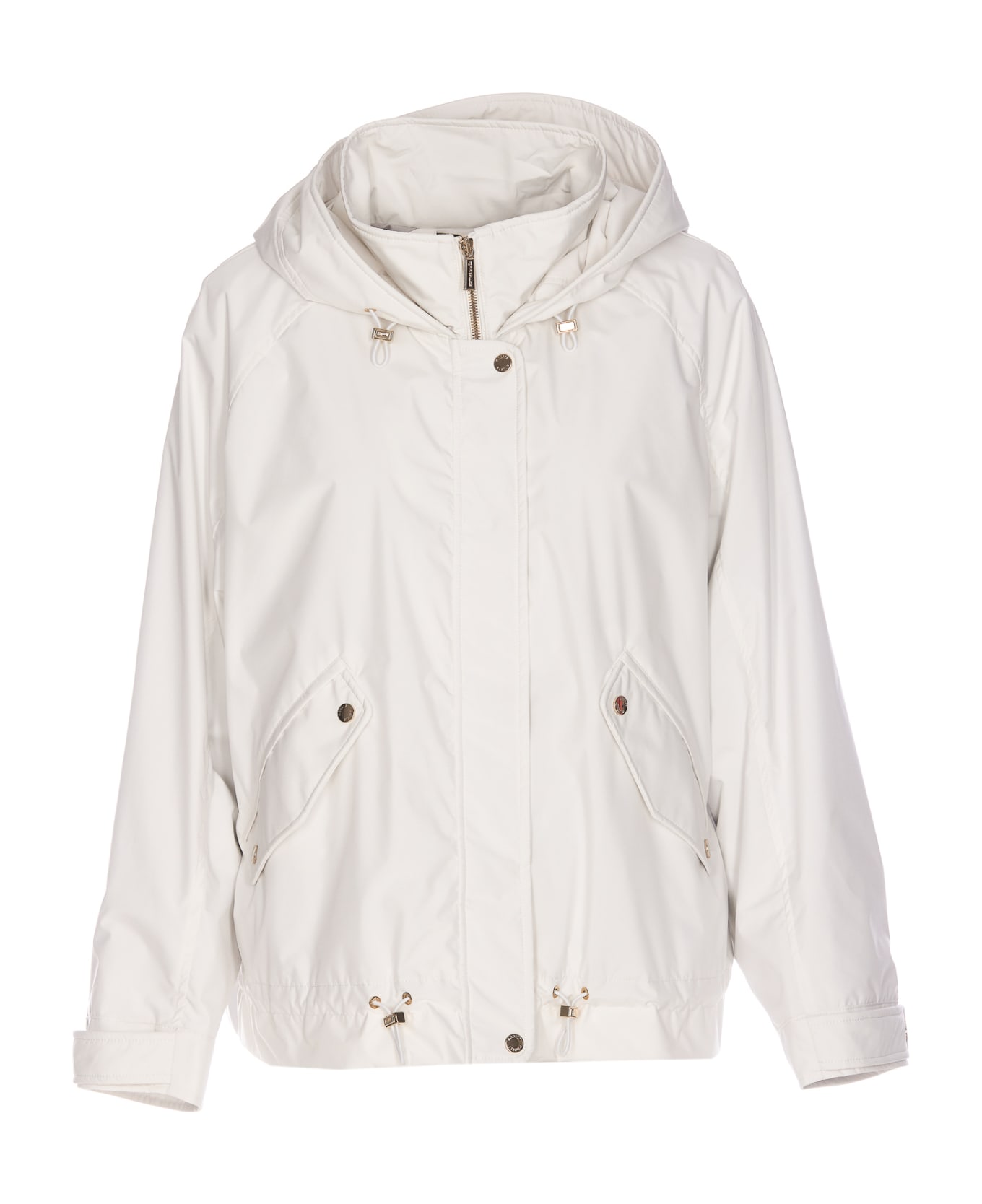 Moorer white Jill jacket with zip and buttons closure, hood, lateral pokcets with button closure