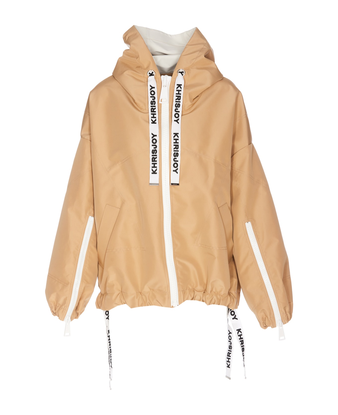 Khrisjoy sand windbreaker with frontal zip closure, cropped moel, lateral pockets, hood with coulisse with logo, zip detail on sleeves Composition: 100% Polyester