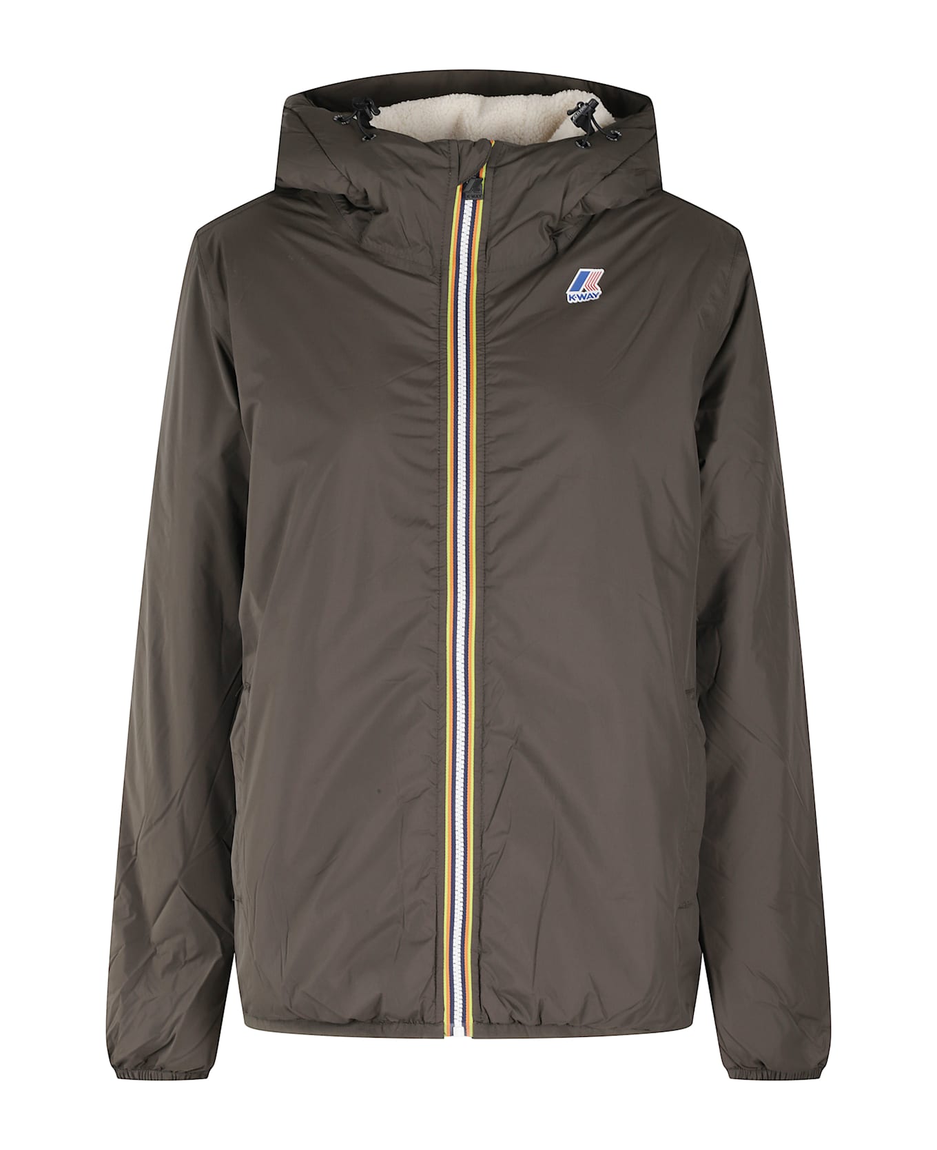 Jacket le Vrai 4. 0 - K-WAY - Olive color - Adjustable hood with elastic cord - Sherpa fabric lining - Front zipper closure - Elastic cuffs - Flush side pockets with zipper - Adjustable jacket hem with elastic cord - Colorful printed logo