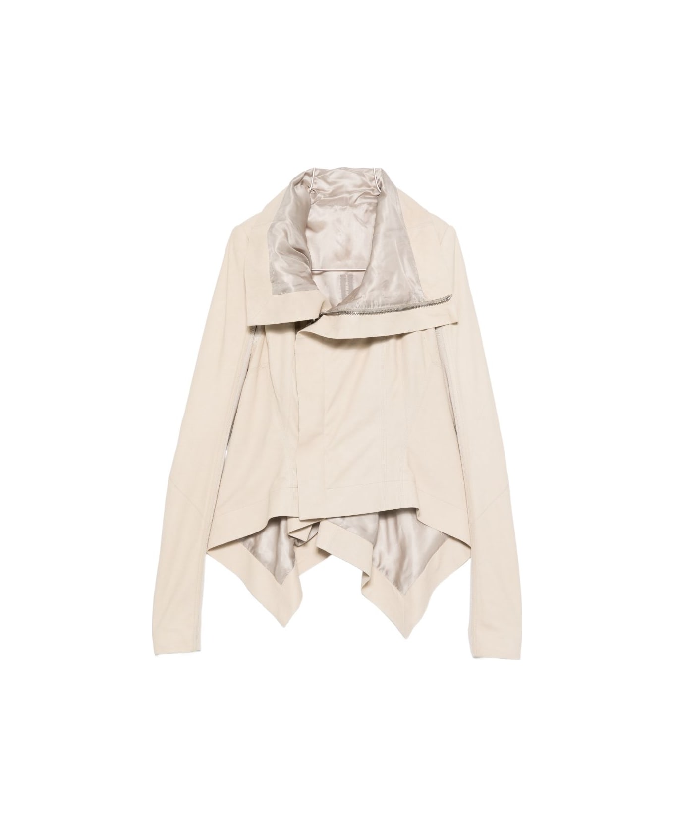 beige asymmetric hem zip fastening wide collar panelled design long sleeves