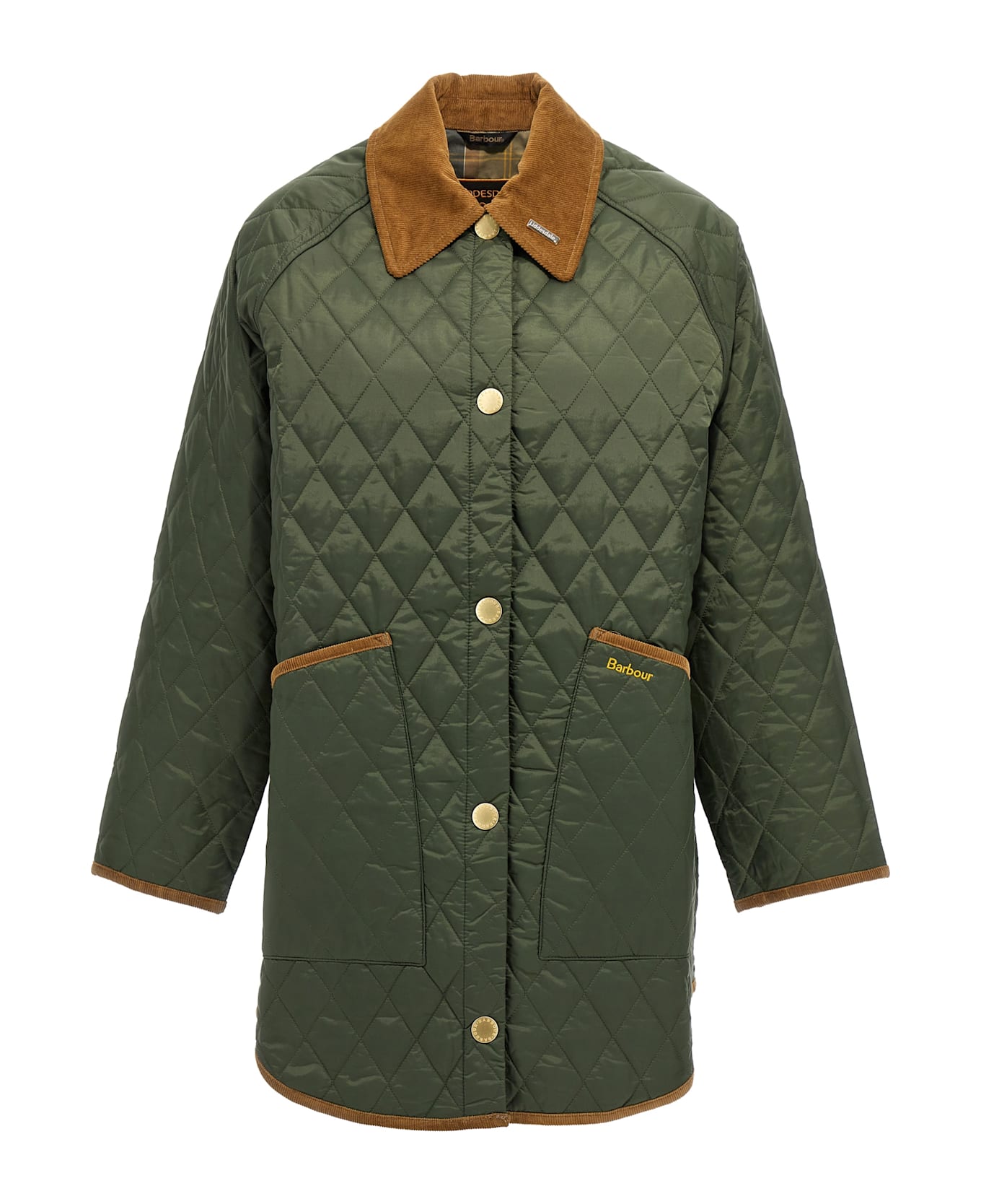 'Liddesdale 30th Anniversary' quilted nylon jacket with corduroy collar and details, brooch on the collar, button closure, pockets, long sleeves. Composition: 100% polyamide