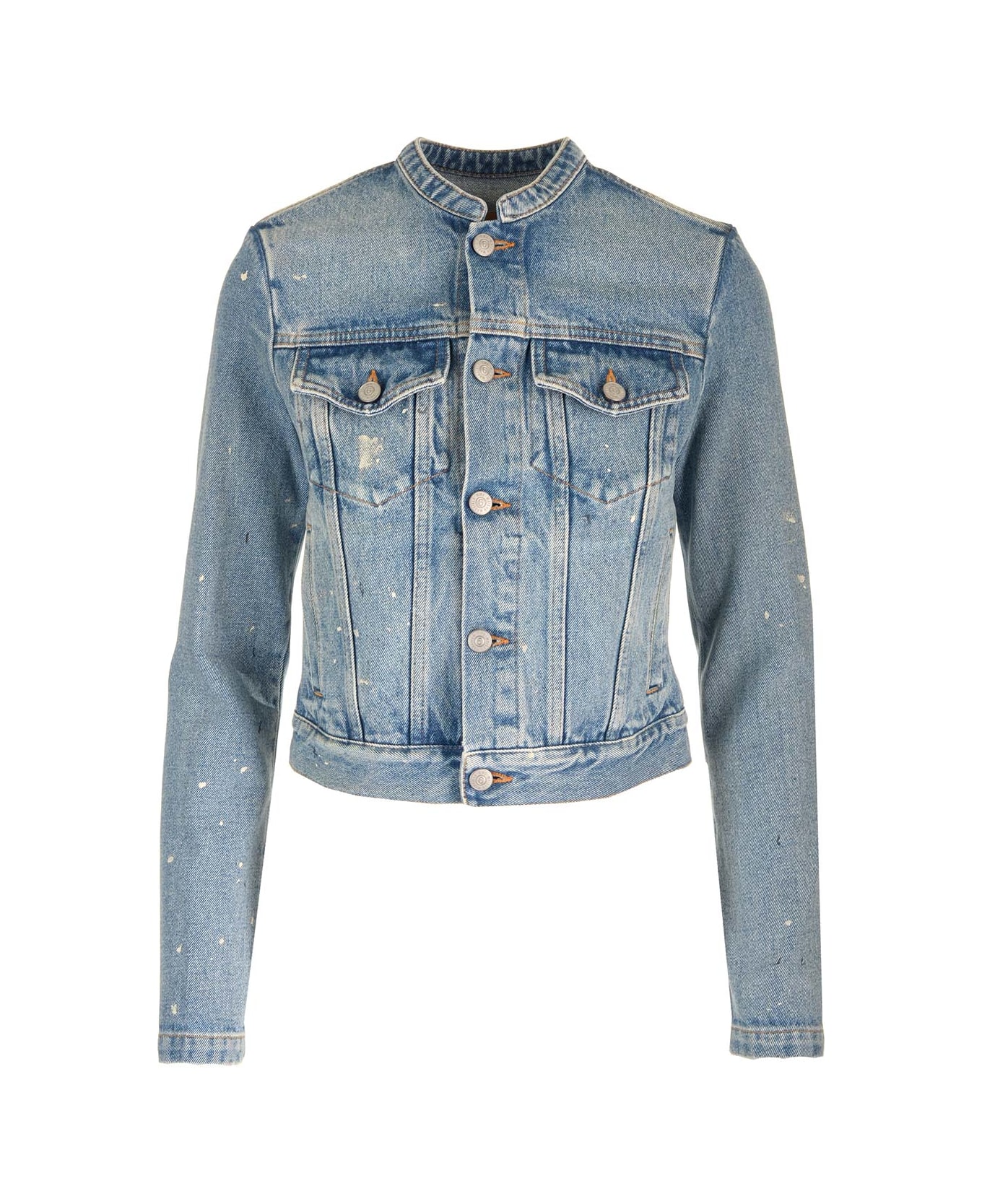 Light blue denim jacket from MM6 Maison Margiela featuring a mandarin collar and a slim fit. Composition: 100% CO