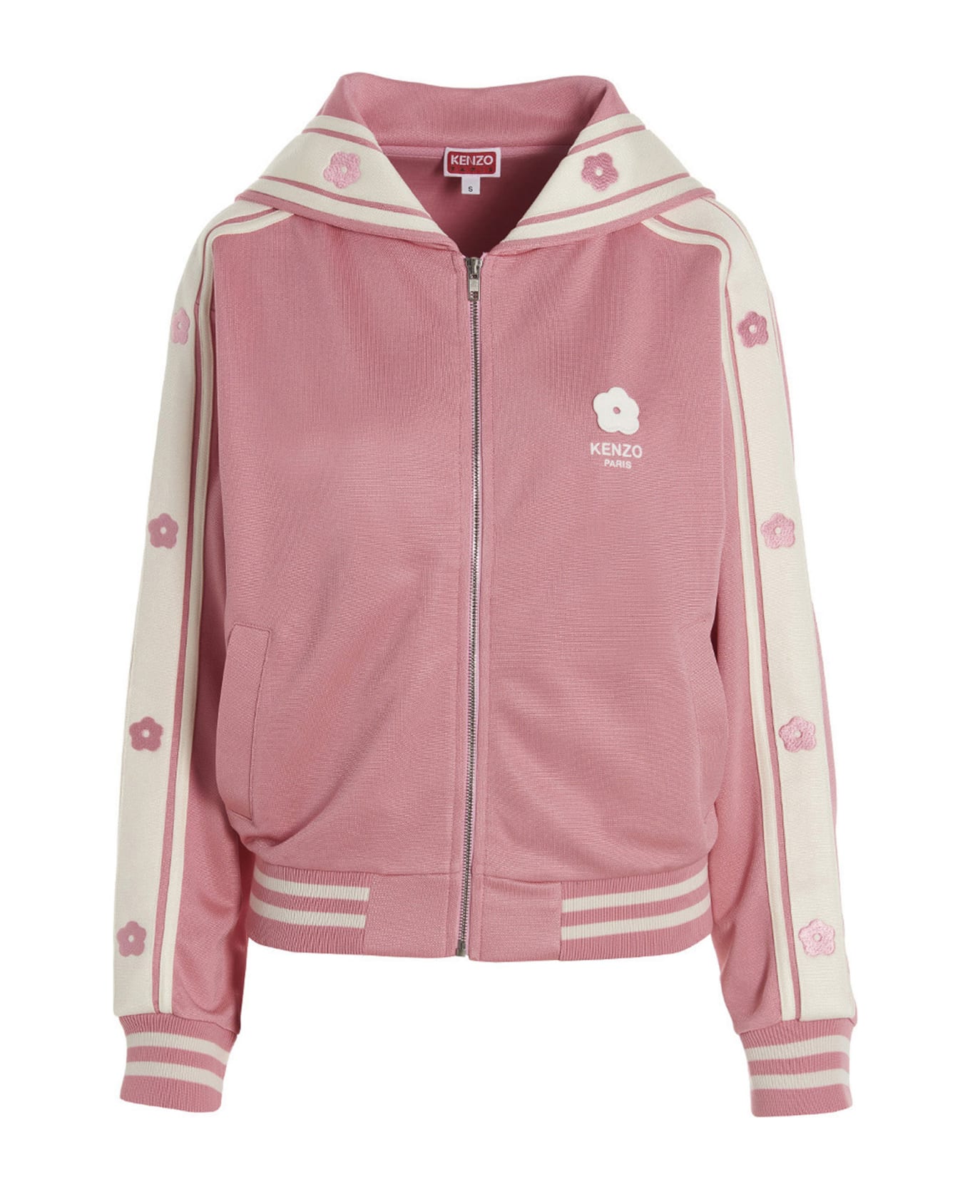 Tech fabric sweatshirt with wide bib on the back, front logo embroidery, maxi back embroidery, zip closure, pockets, long cuffed sleeves, contrast bands on the sleeves with embroideries. with embroideries.
