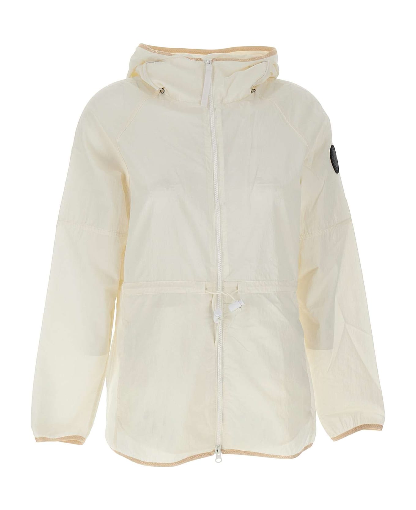"Lundell Jacket " Canada Goose woman, white, hood, drawstring on hood and waist, adjustable and regular fit, internal breathable mesh, double-slider front zip, two external pockets with zip fastening,