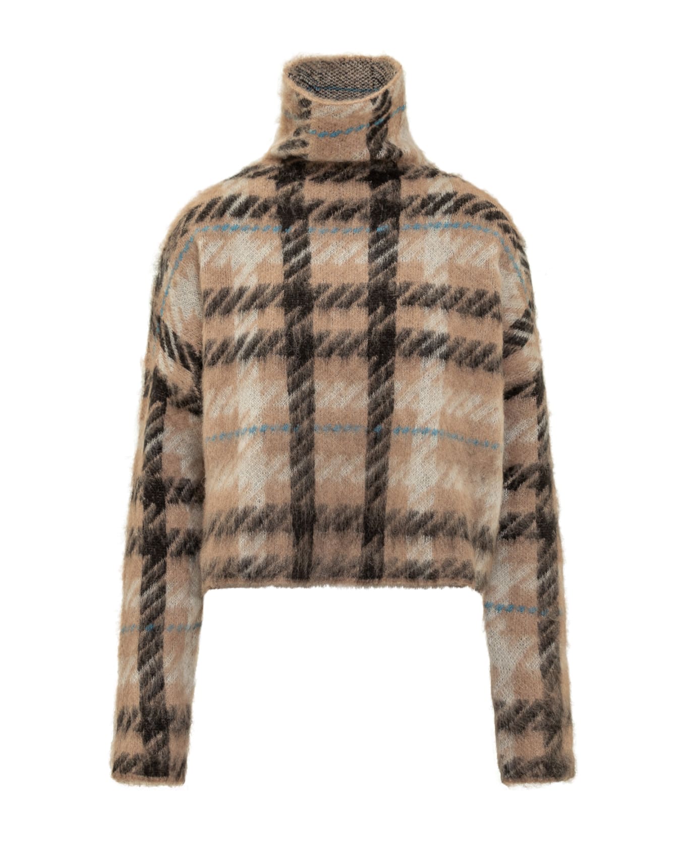 Long-sleeved sweater. Turtleneck turtleneck. Knitted knit. Jacquard check pattern.