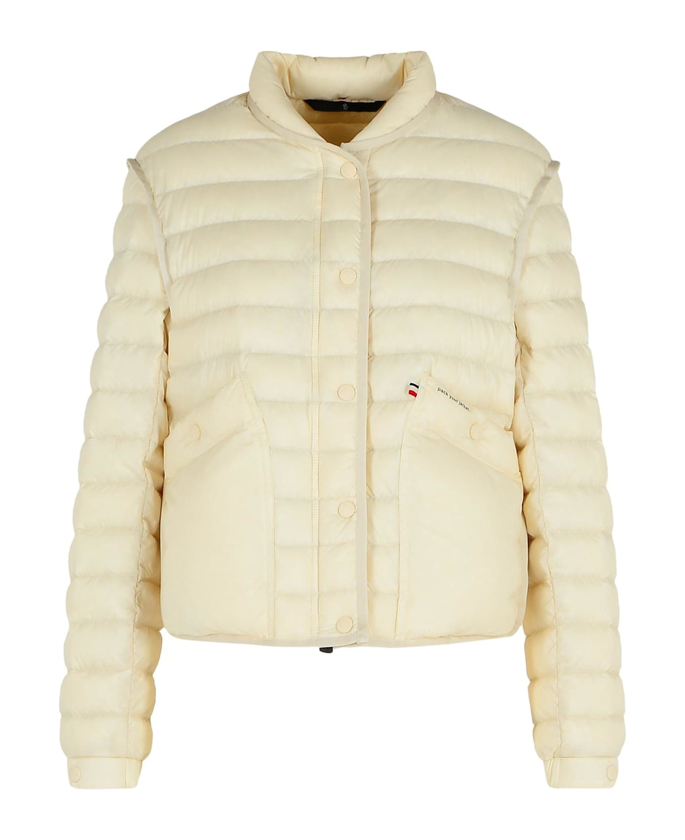 Tone-on-tone collar, feather padding, central zip closure, contrast logo, two side pockets, drawstring at the hem