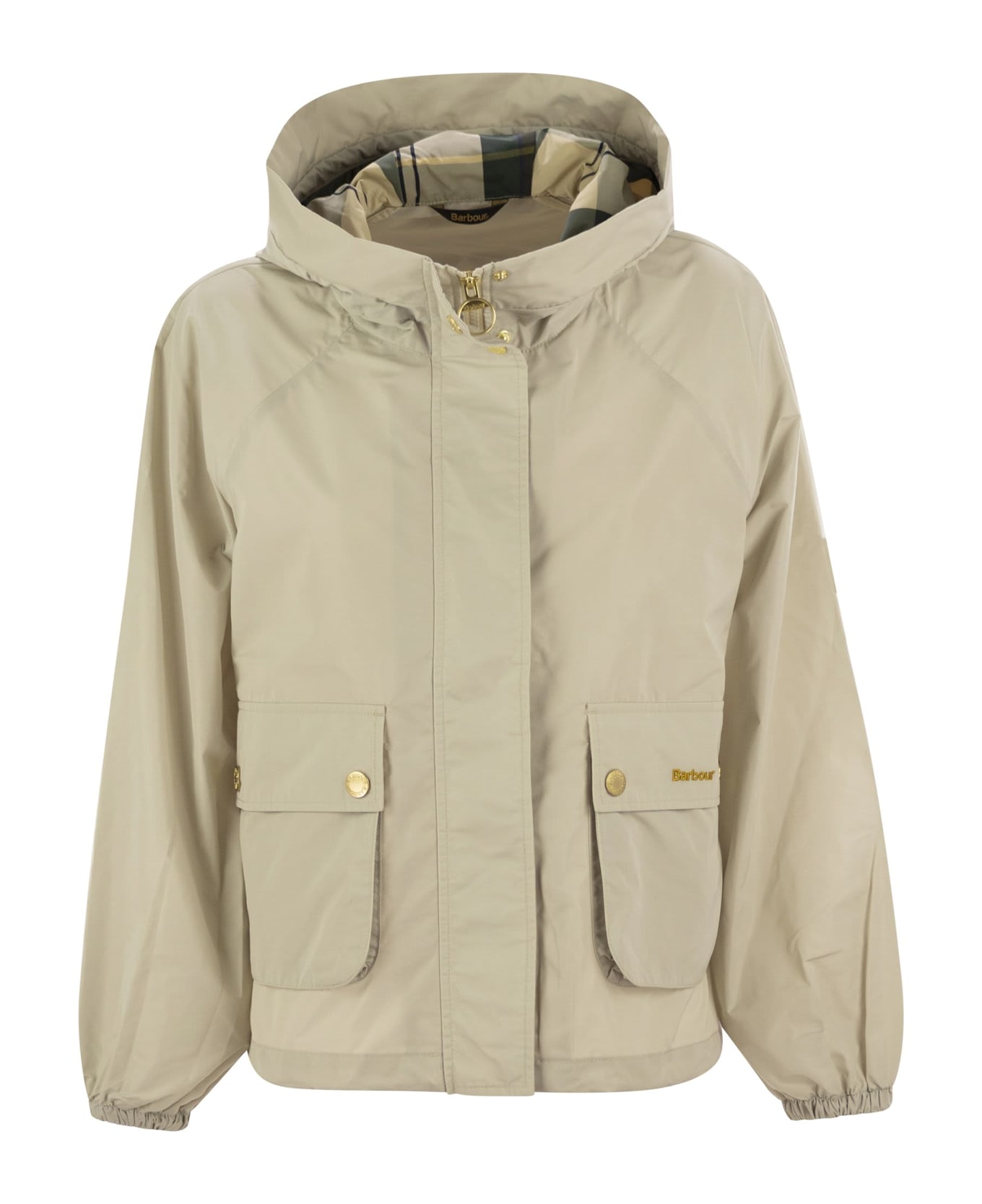 The Mae jacket is the perfect combination of style and functionality. This unlined, lightweight model features a fixed hood and double-opening patch pockets for storing essentials. The zip fastening offers exceptional practicality. Perfect to wear when the weather becomes unpredictable, this jacket fully reflects the sublime craftsmanship of Barbour International. - Logo on left pocket - Covered zip closure - Elastic at cuffs DESIGNER ID: LSP0208 LSP ST32