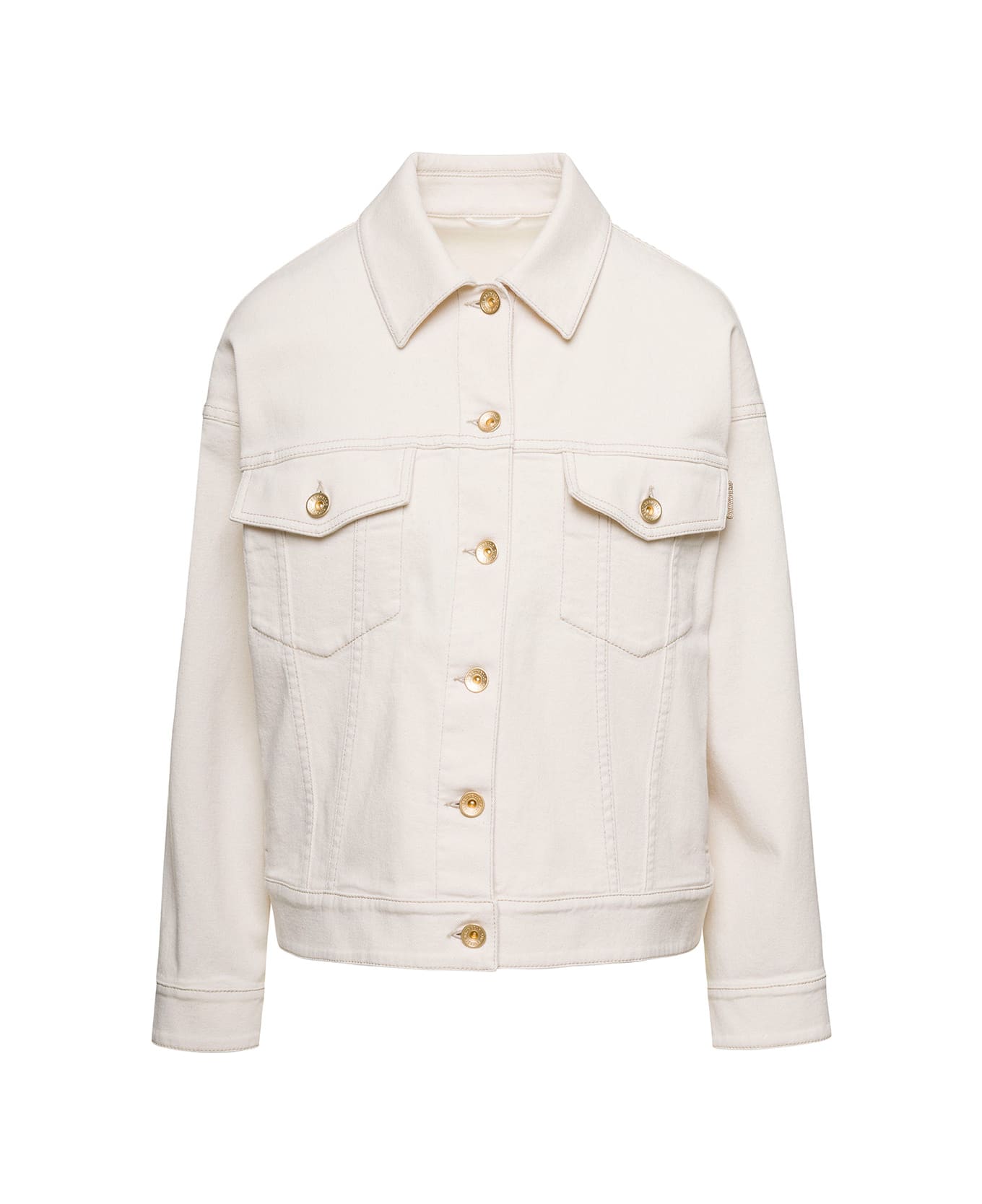Denim jacketPointed collarFront button fastening Long sleevesFront flap patch pockets Straight hem White Cotton Regular fit Composition:
