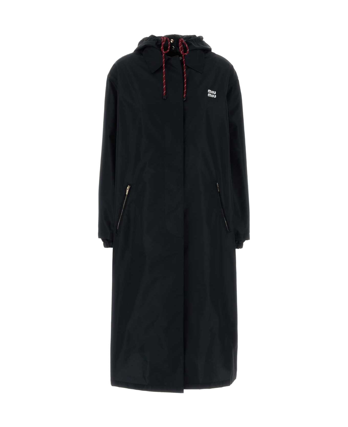 Midnight Blue Polyester Overcoat from Miu Miu