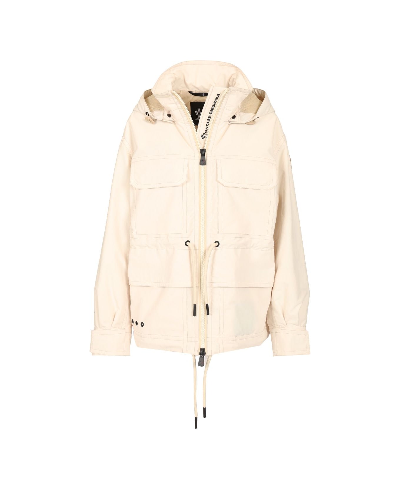 Moncler Grenoble "Nimba" field jacket in recycled technical fabric, with removable and adjustable hood, waist and bottom of the garment with drawstring Composition: HOOD: 100%POLYESTER - BASE FABRIC: 100%POLYESTER LINING: 100%POLYESTER - HOOD LINING: 100%POLYAMIDE/NYLON - DETAILS PADDING: 100%POLYESTER