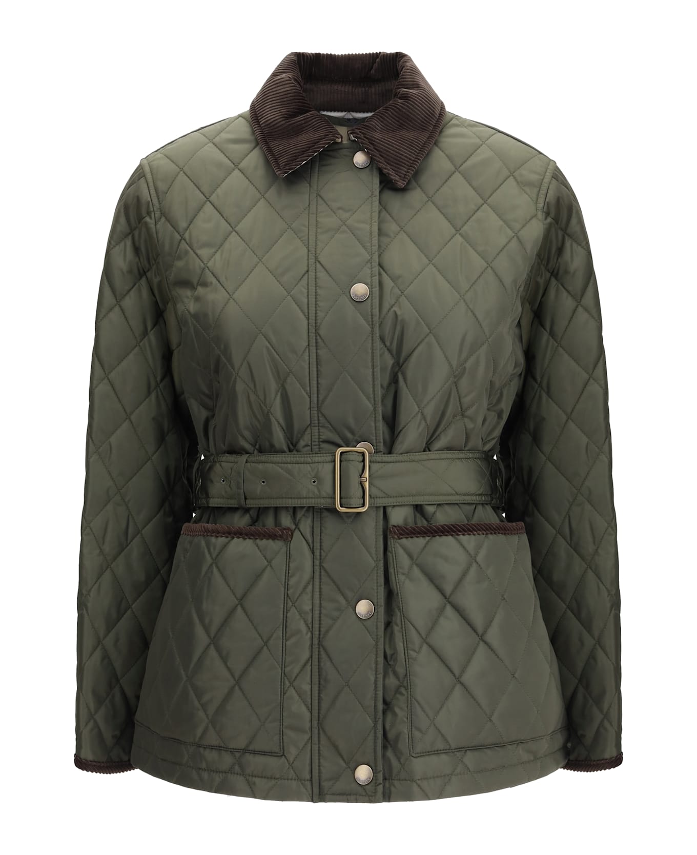 The burberry quilted jacket is crafted from lightweight italian-woven nylon, combining functionality with refined style. featuring a zip and press stud fastening, it is finished with a flattering b-buckle belt. side patch pockets add practicality, while the burberry check interior and equestrian knight design label on the side nod to the house's iconic heritage. Composition: 100% % Polyamide