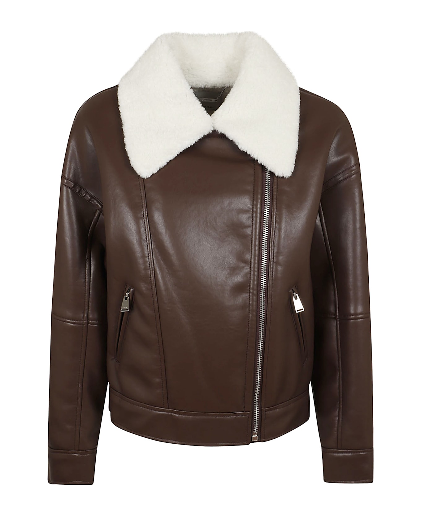 Nyx faux leather jacket BY JONATHAN SIMKHAI. Asymmetric zip closure; two slanted pockets with zip; contrasting interior. Motorcycle design.