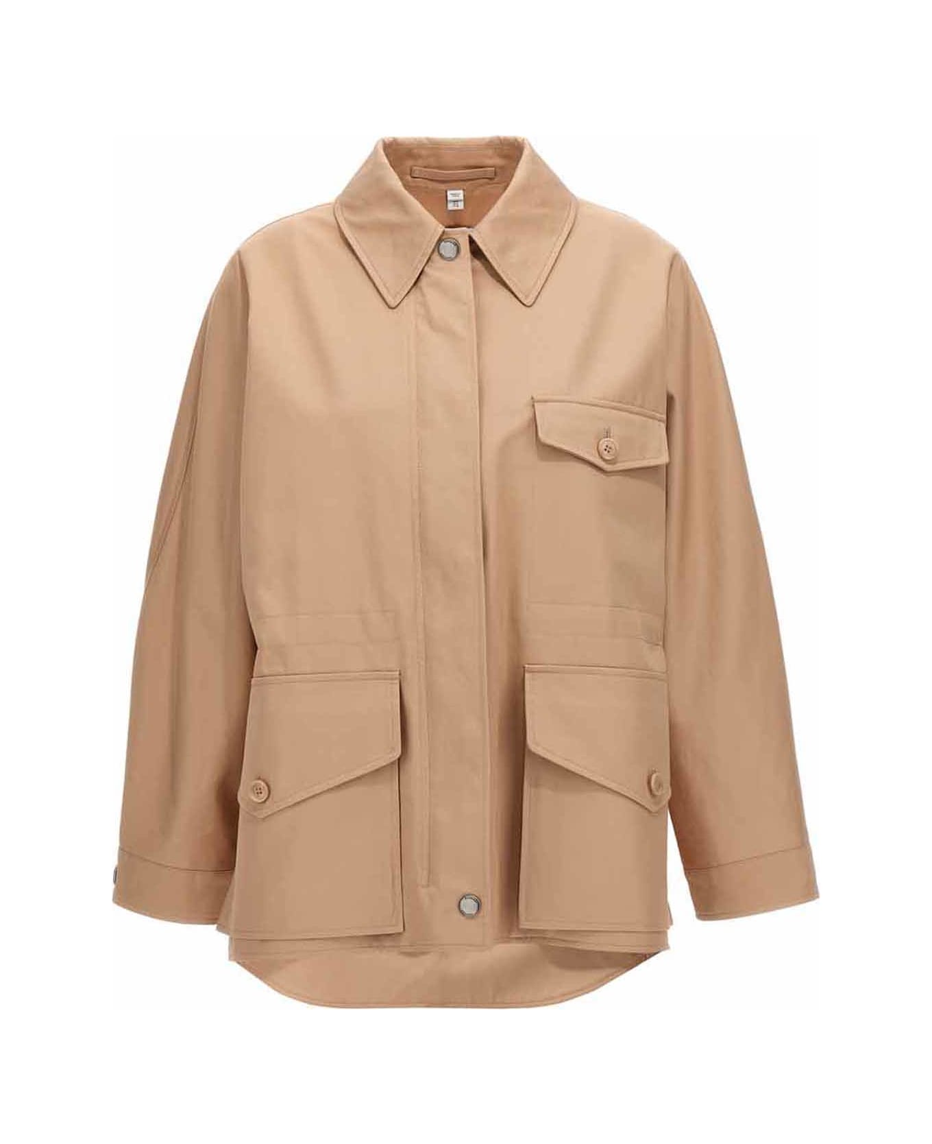 Oversize, gabardine cotton patch jacket with snap button closure, concealed zip, buttoned flap pockets, snap button cuffs and an adjustable waist drawstring. Composition: 100% cotton
