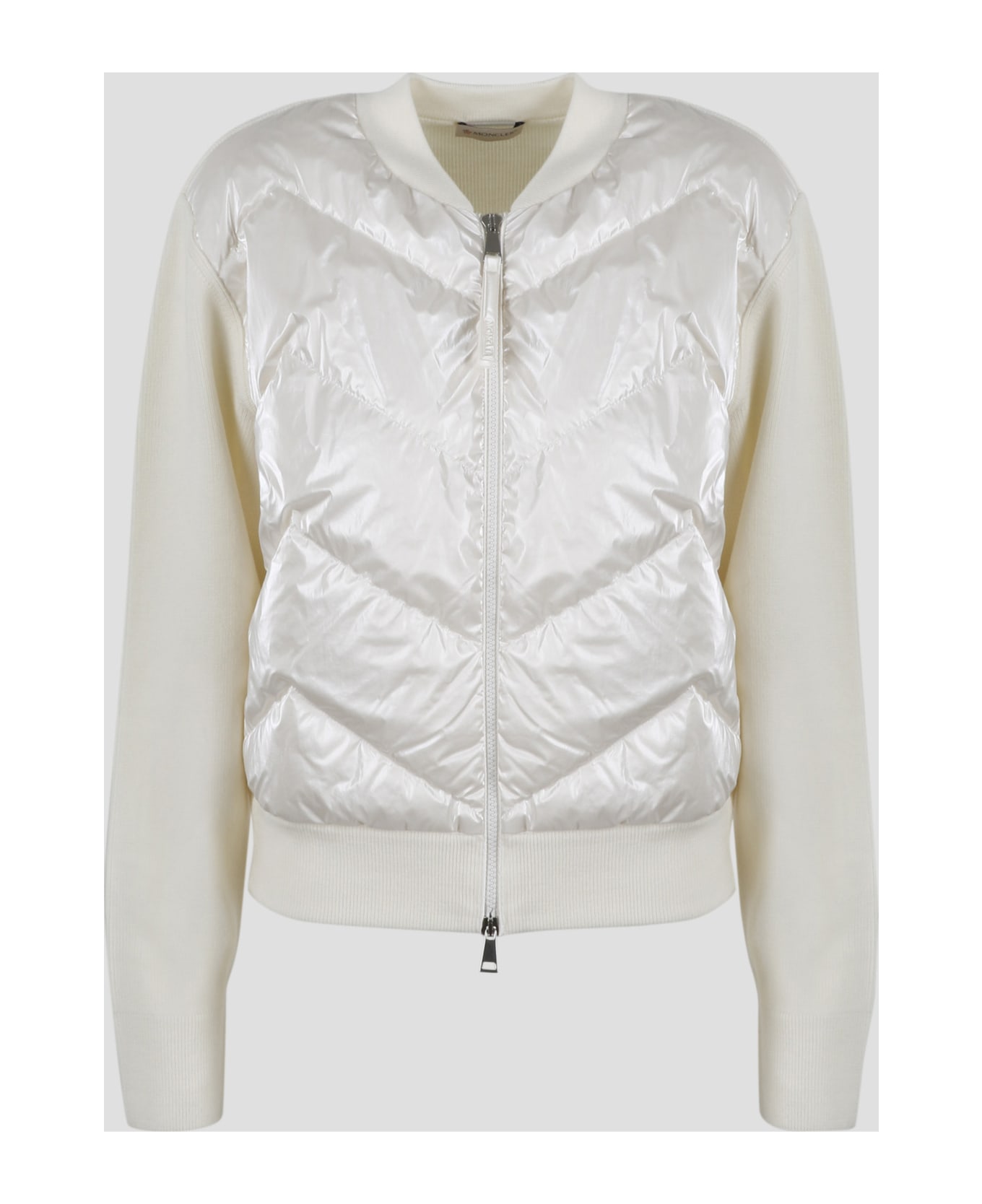 Moncler zip-up cardigan enhanced by a down-filled, chevron-quilted front. - SS23 - Crop fit - Zip closure - Logo patch on the left sleeve - Side zipped pockets - Ribbed trims - Made in Romania - 100% Polyamide