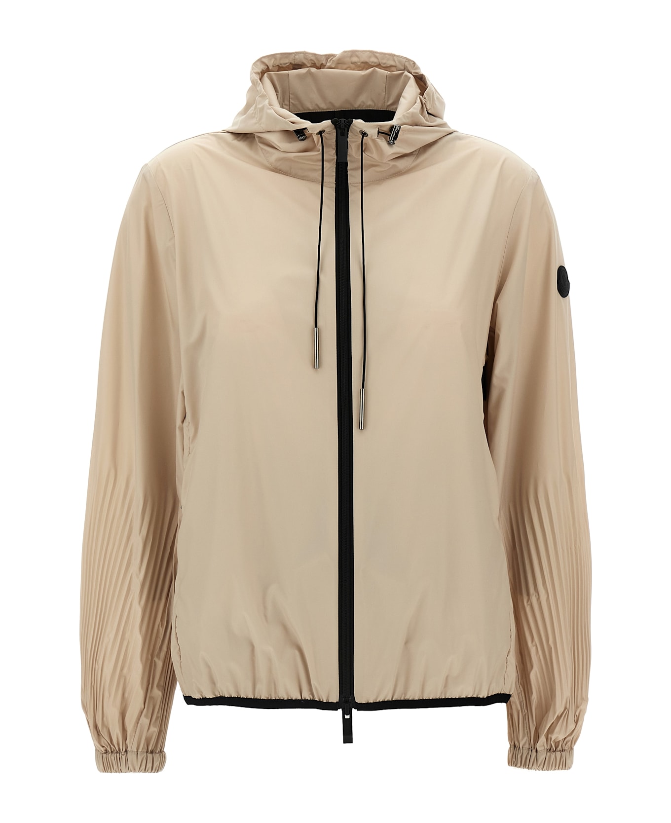 'Panat' jacket in water-repellent technical fabric with perforated back and contrast details, logo patch, long sleeves with pleated sleeves and elastic cuffs, hood with adjustable drawstring, pockets, zip closure.