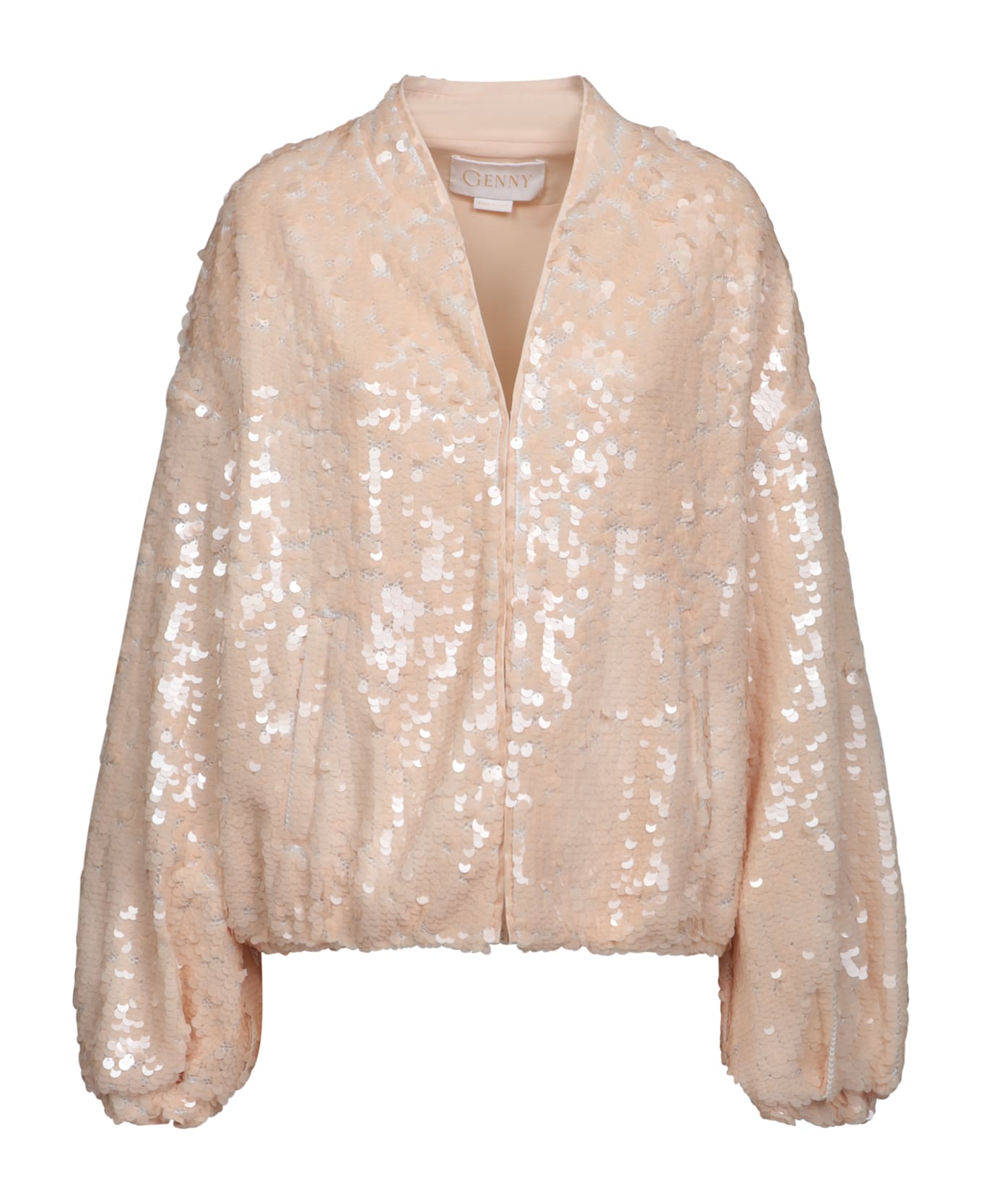Invoke sparkling sophistication with Genny's Pink Sequin Bomber. This unique jacket shines brightly on any occasion, perfect to add a touch of glamour to your wardrobe.