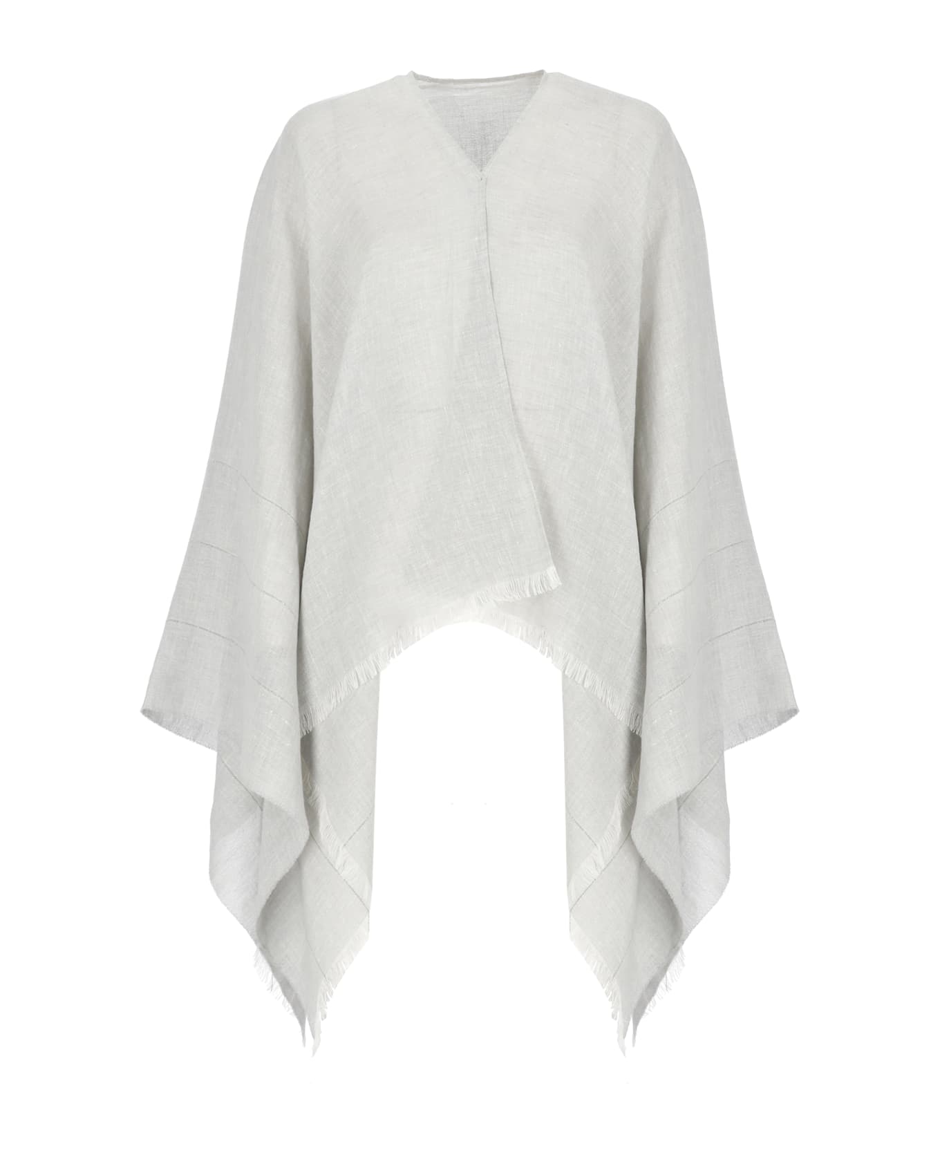 - Grey Peserico linen and cotton poncho for woman - Bright light point details - Trims with finges Composition: 52% Linen, 48% Cotton