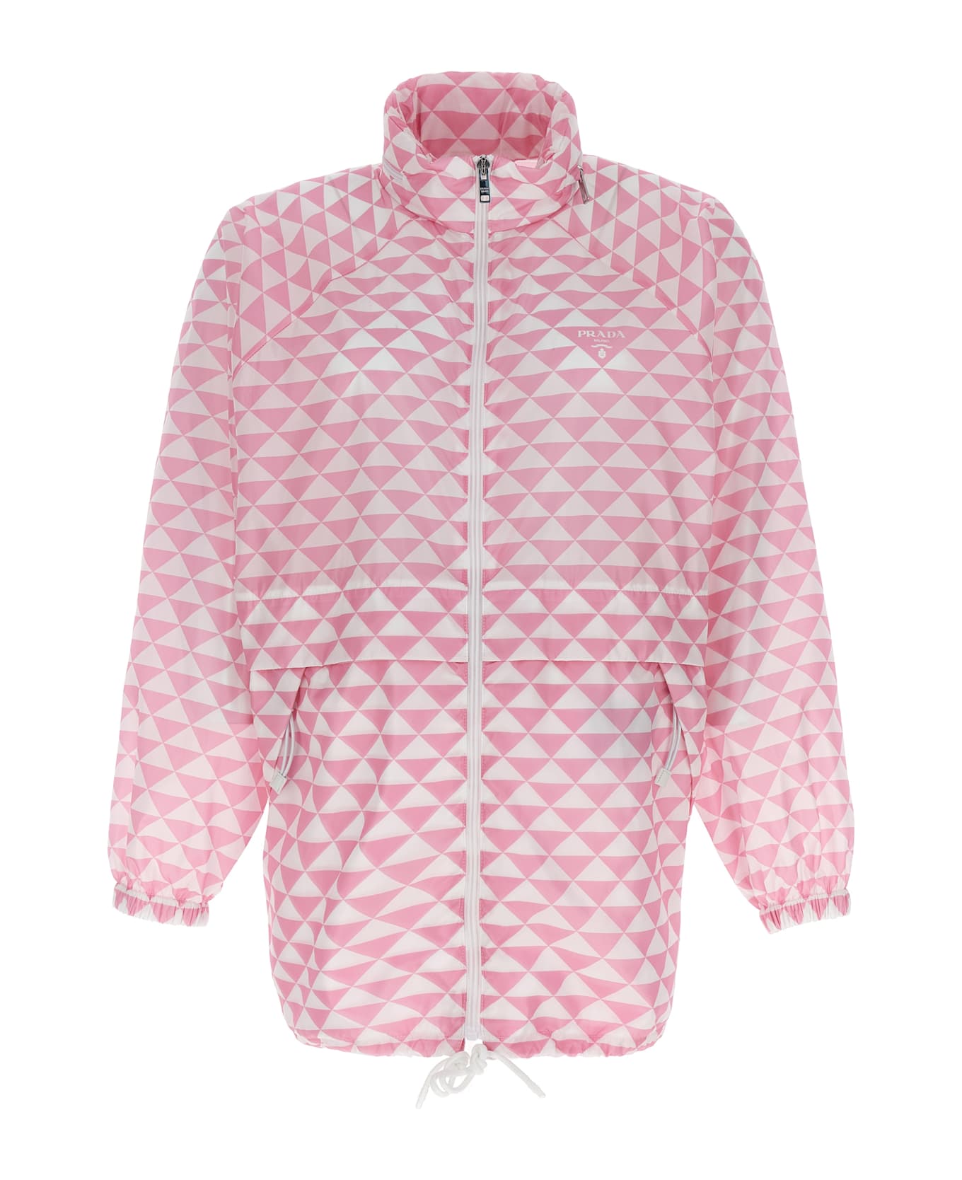 Prada Symbole' waterproof jacket in nylon with all-over print, zip closure and a removable hood. Composition: