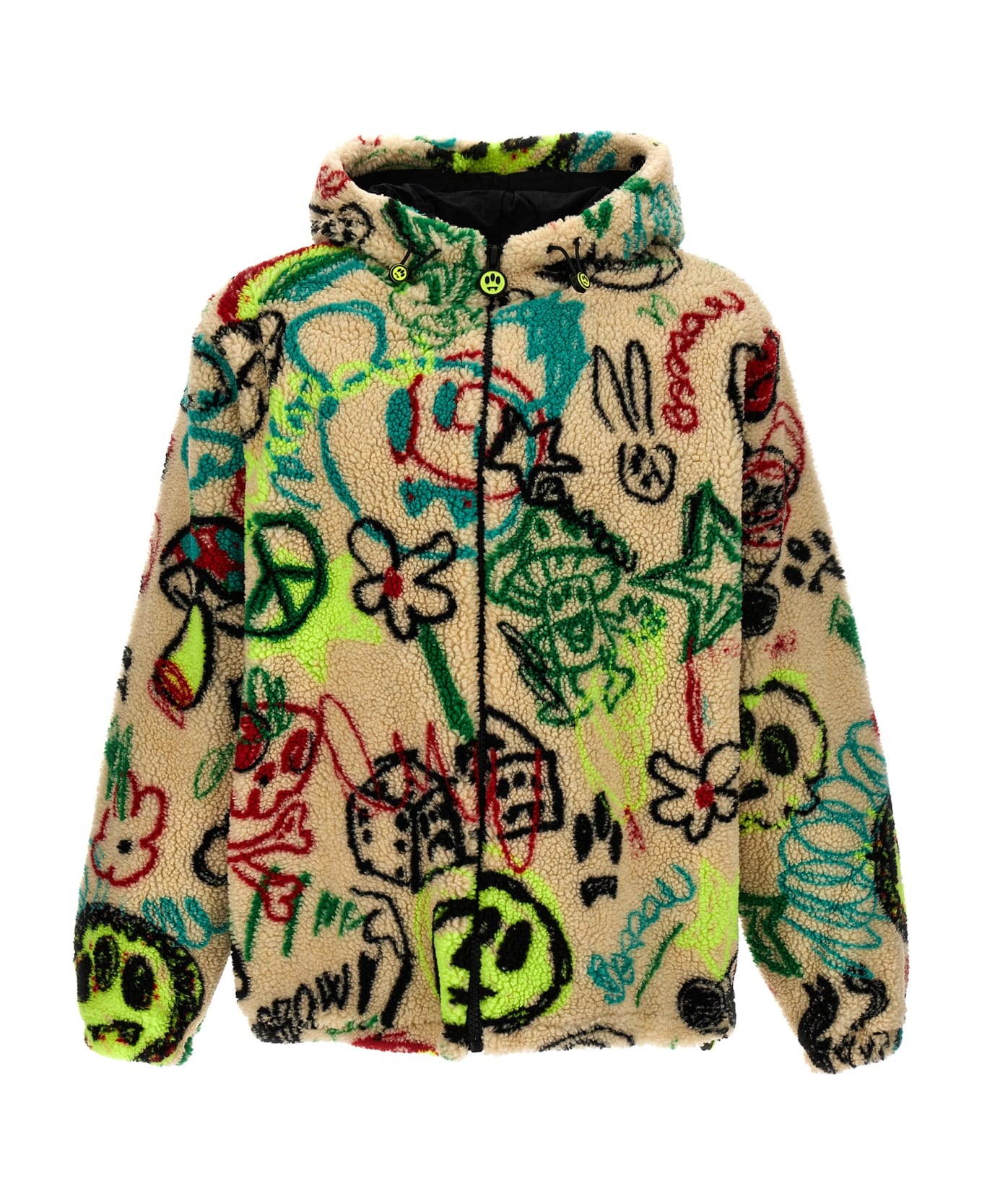 Fleece hooded jacket with all-over print, zip closure, pockets, long sleeves with elastic cuffs.