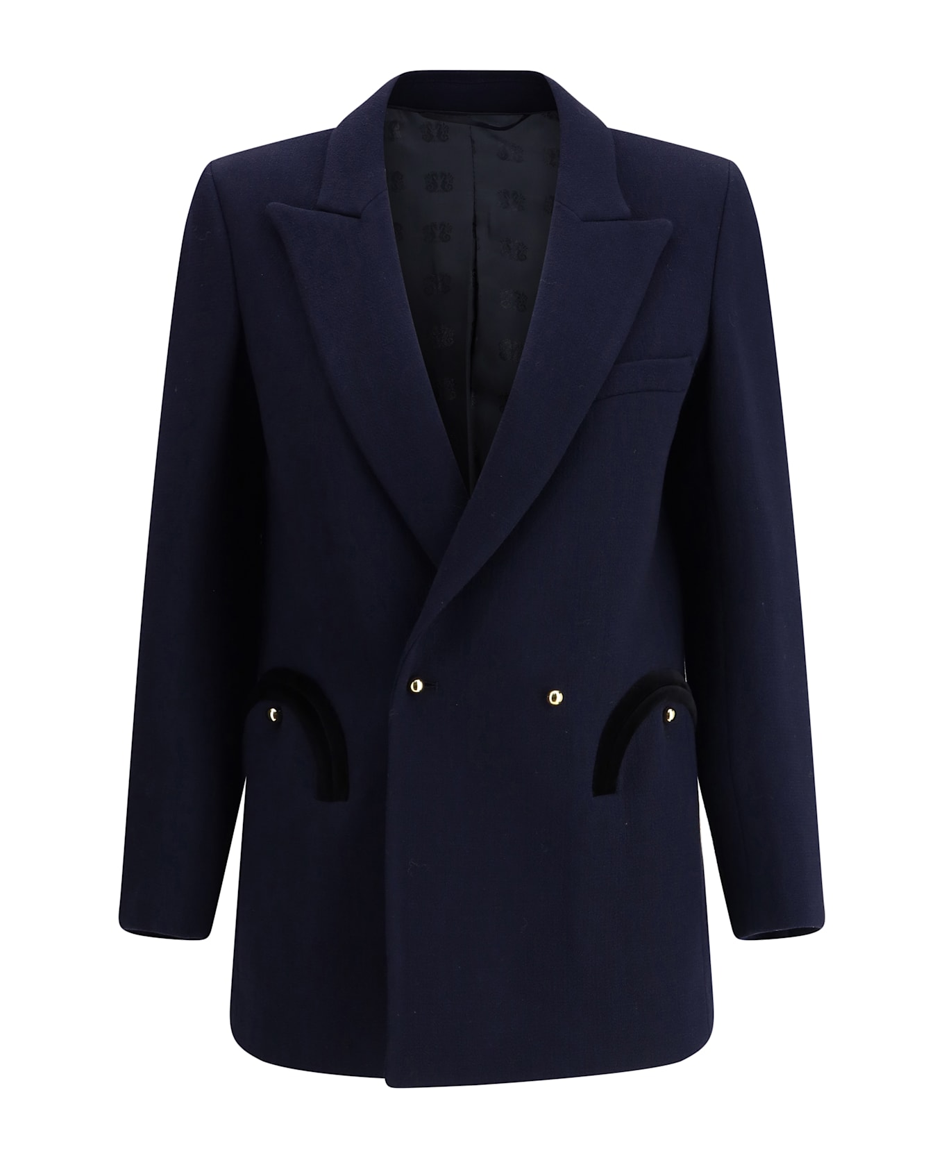 The blazè milano resolute everyday blazer jacket in virgin wool is an elegant and versatile piece, designed for everyday wardrobe. the peak lapel adds a touch of sophistication, while the double-breasted front closure adds structure and style. a welt pocket on the front and two welt pockets with semi-circular cut in velvet enrich the design with sophisticated and functional details. the vent on the back completes the model, ensuring a comfortable fit and an impeccable line.