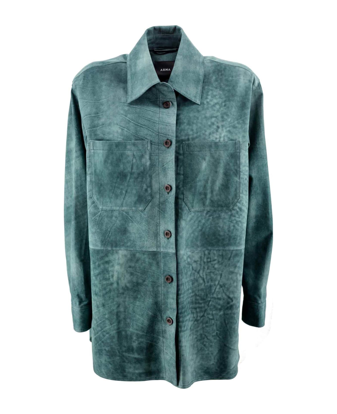 lambskin, inverted pleat, buttoned-cuff sleeves, classic collar, front button fastening, long sleeves, curved hem. Composition: 100% Calf Leather