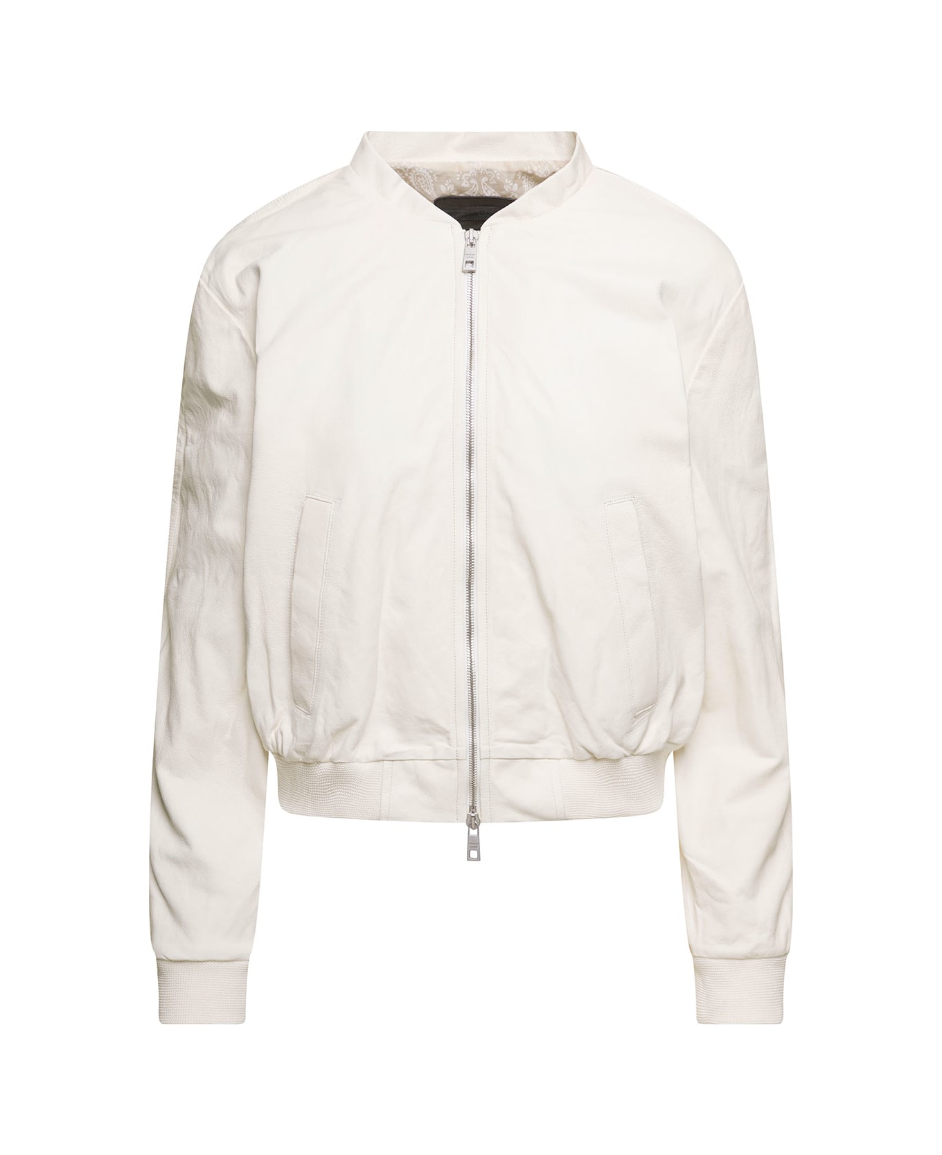 Jacket Bomber collar Front fastening with two way zip Long sleeves with cuffs Rib trim Straight hem Tonal stitching White Regular fit