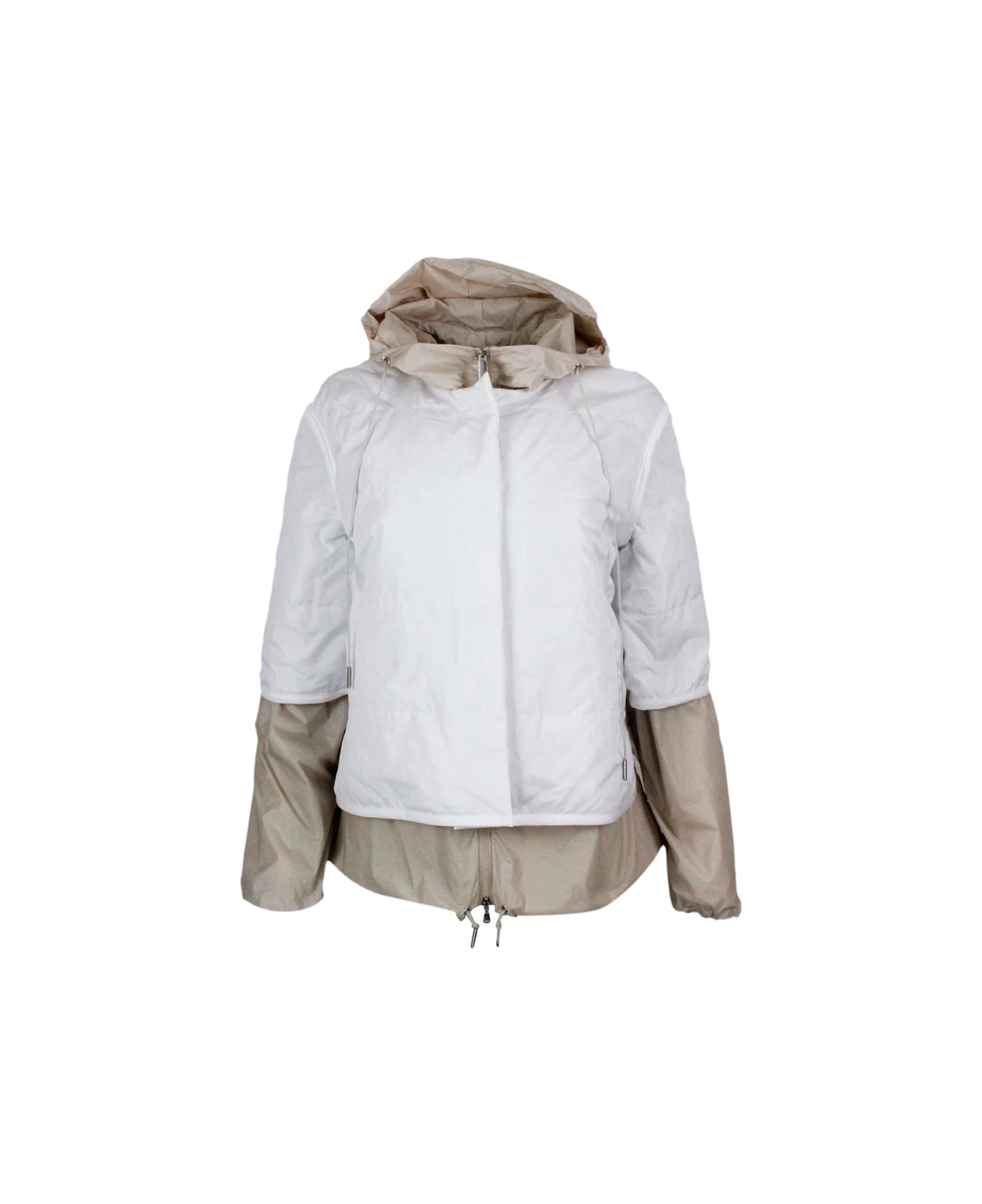 windbreaker in technical fabric combined with short-sleeved down jacket and hood Composition: 100% Polyamide