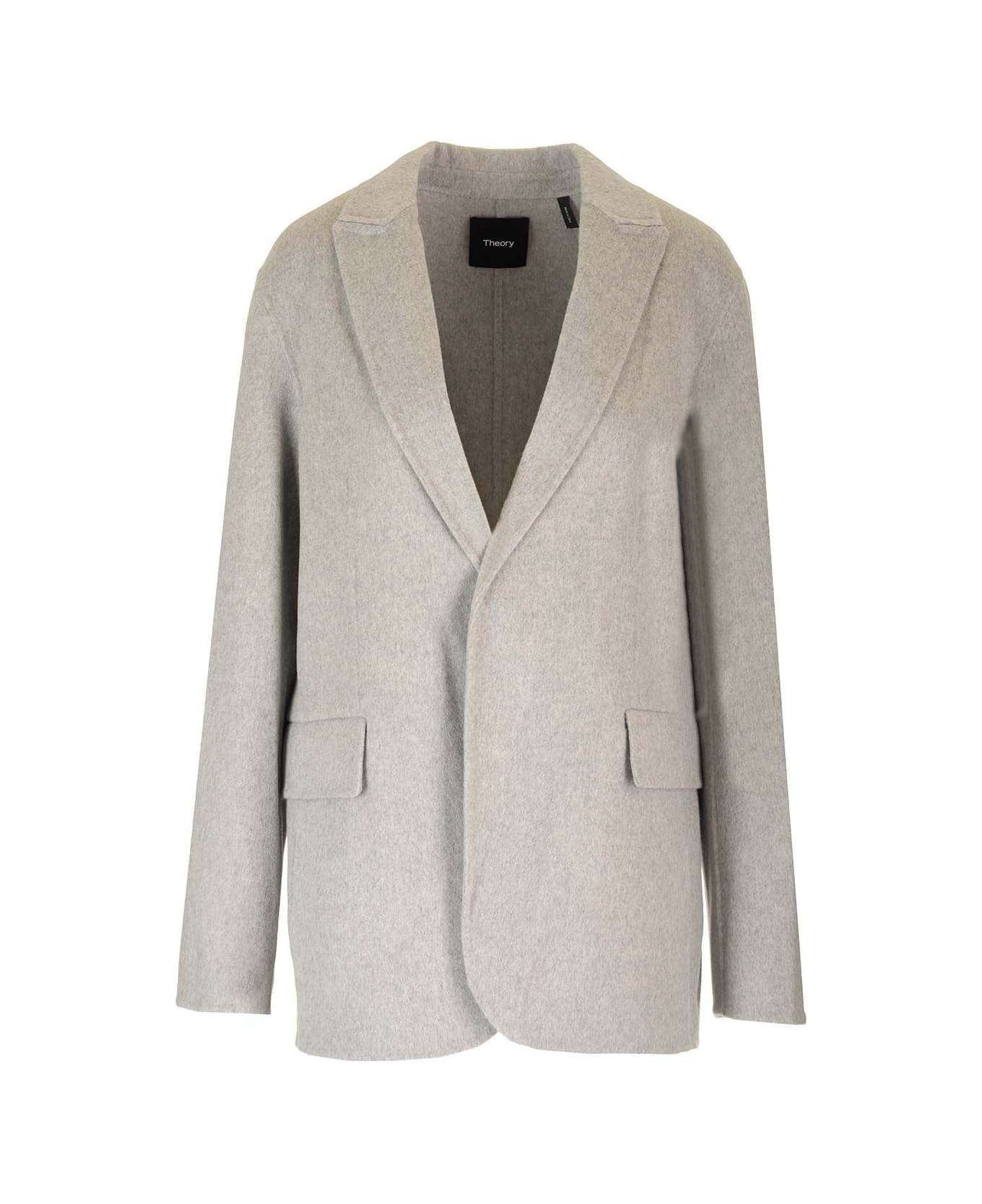 Deconstructed blazer in pearl gray wool and cashmere by Theory, without buttons, unlined, reverse effect ribbing detail, straight cut. Composition: 90% WOOL, 10% CASHMERE