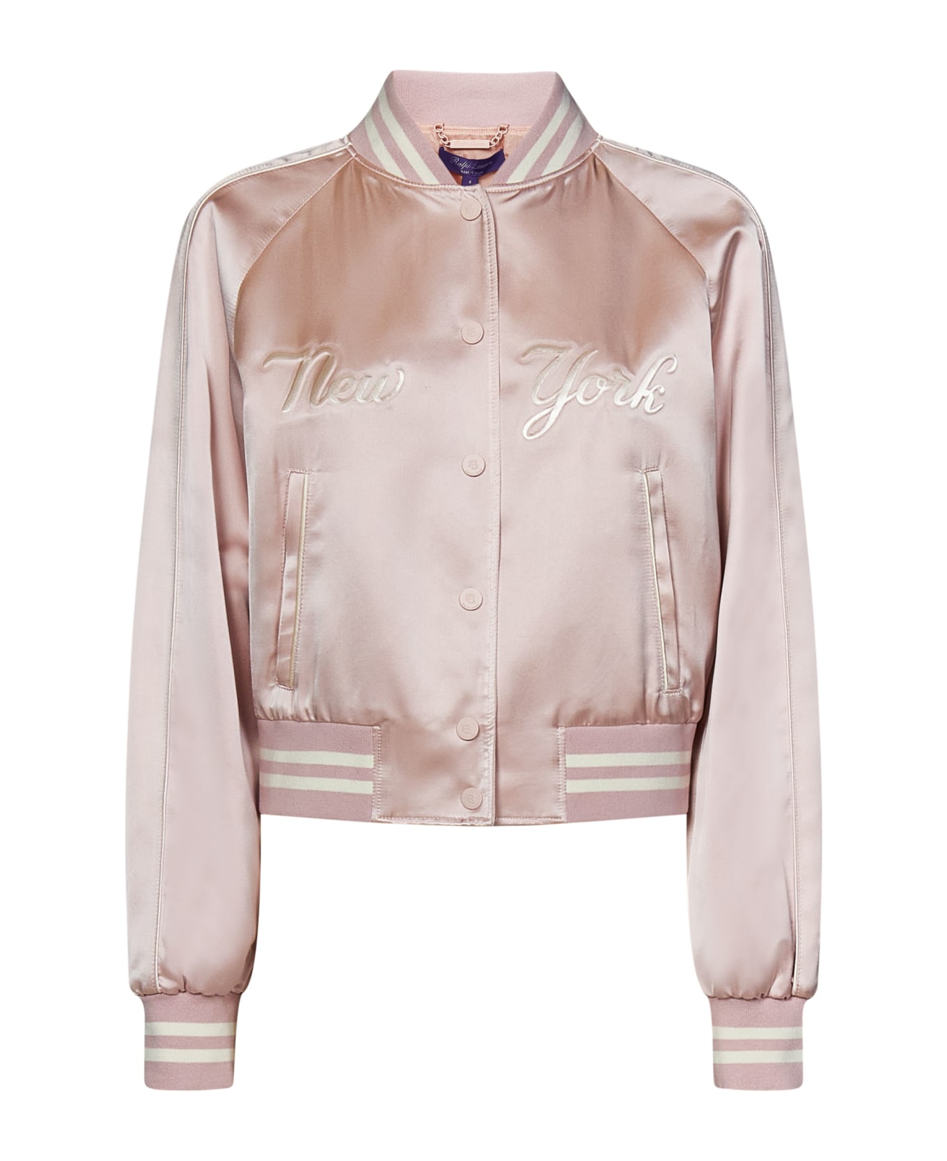 • Striped ribbed baseball collar; Long raglan sleeves, striped ribbed cuffs