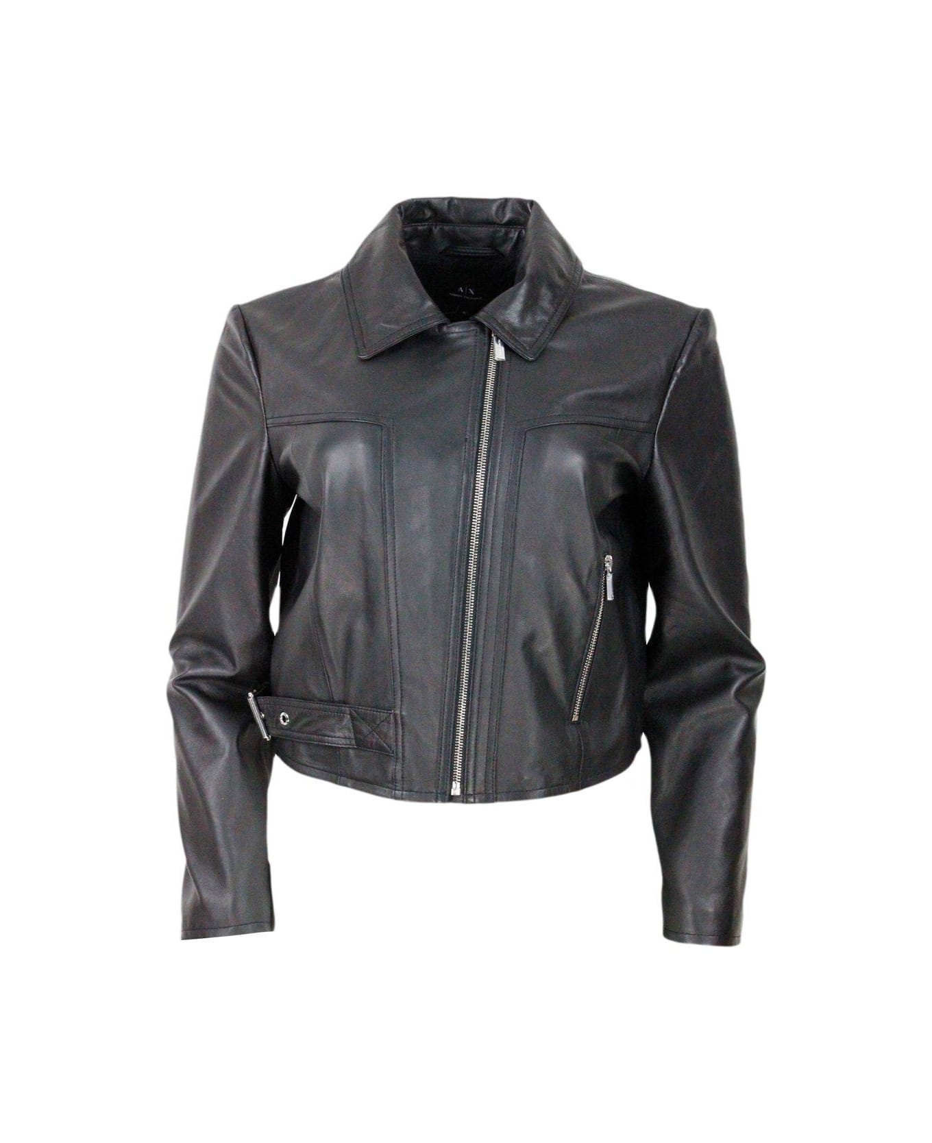 Zipped Buckle-fastened Leather Jacket