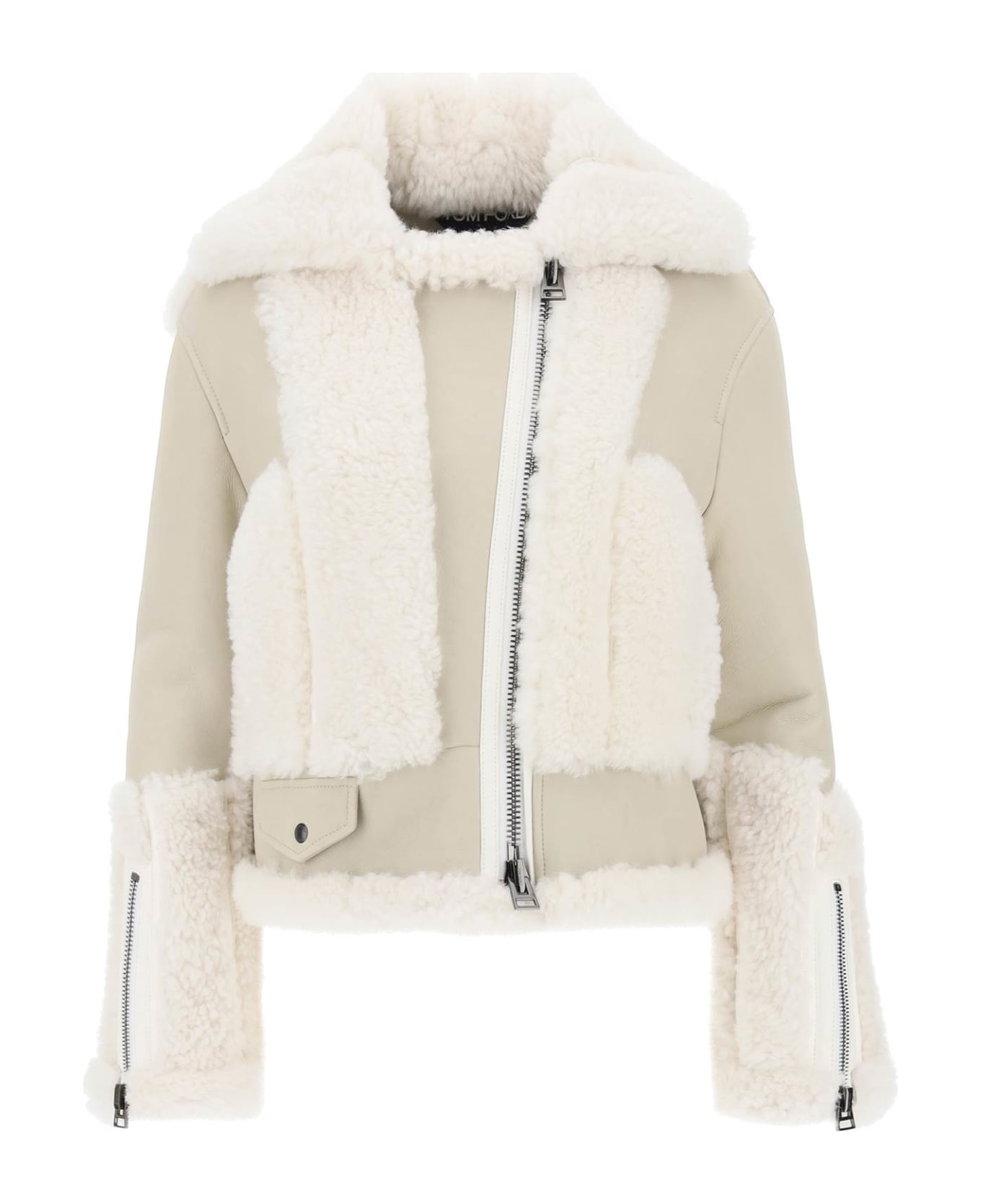 Tom Ford Jacket Crafted In Matte-finish Lamb Leather With Shearling Inserts All-over. Model Characterized By A Patchwork Design Featuring Notch Lapel, Off-center Zipper Closure, Side Welt Pockets And Zipper Cuffs. Finished With Contrasting Calf Leather Detailing. Relaxed Fit With Boxy Cut. The Model Is 177 Cm Tall And Wears Size It 38.