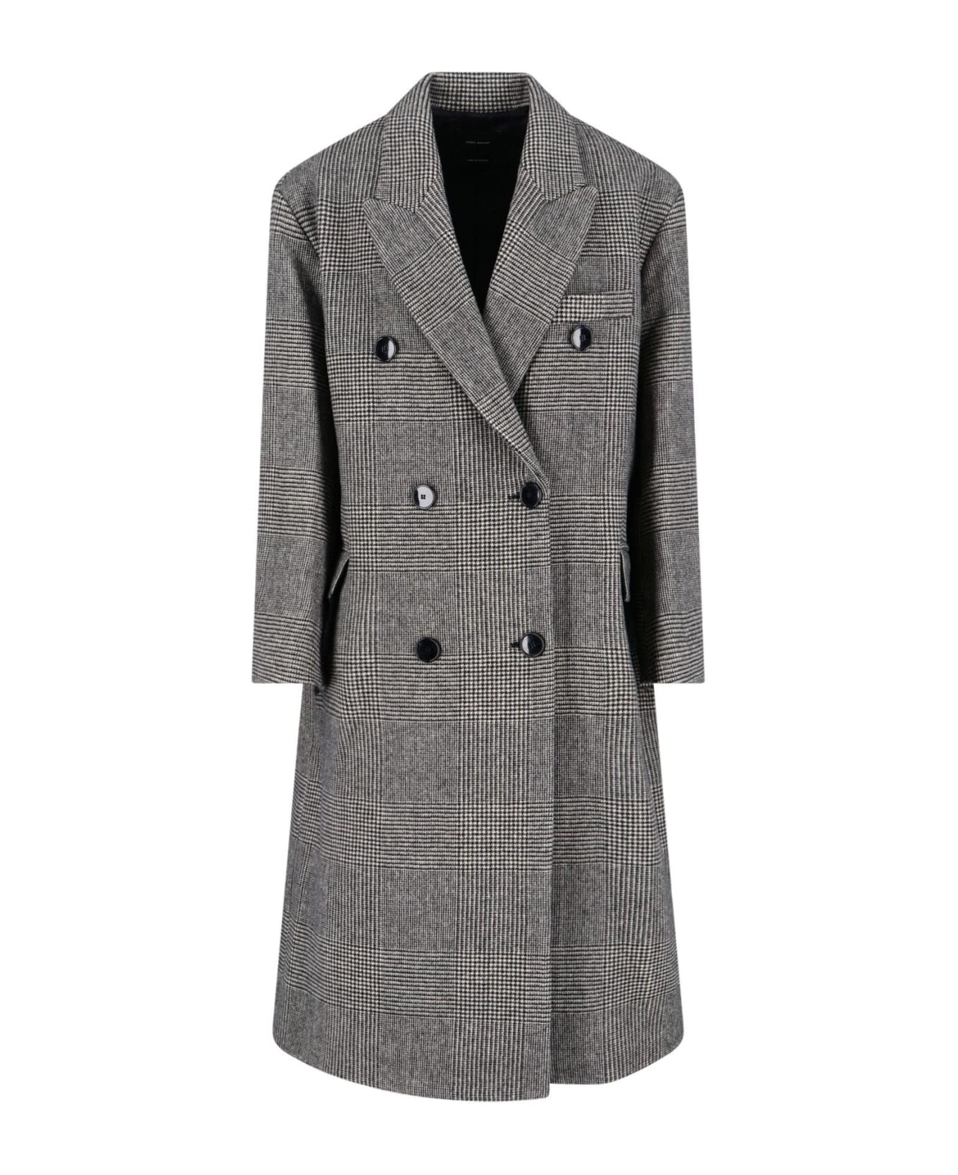 Isabel Marant 'Lojimiko' Coat, virgin wool, grey, Glecheck print, collar with lapels, double-breasted closure, long sleeves, welt pocket on the chest, side pockets, cuffs with buttons, central back vent.