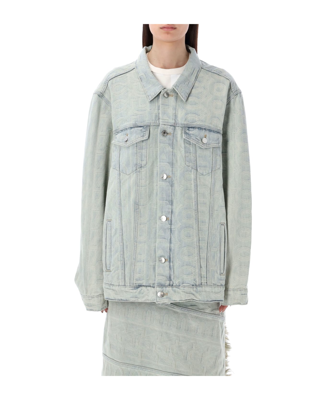 Cotton Monogram Denim Jacket By Marc Jacobs. Featuring: Oversized Fit Two Slit Pockets At Chest Two Welt Pockets At Waist Marc Jacobs Denim Tack Buttons Black Yarn Dye Monogram Model Is 1,72 M Tall And She Is Wearing Size S