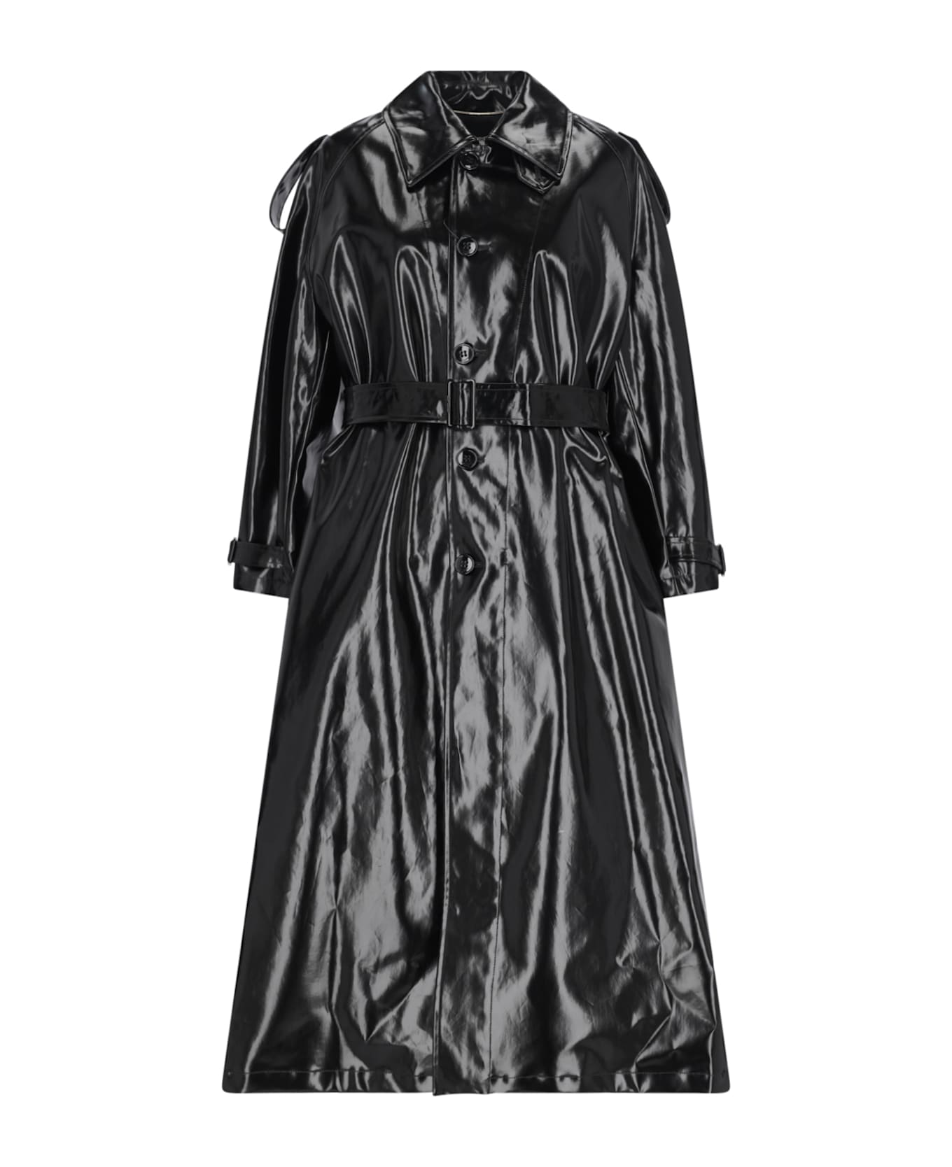 Saint Laurent oversize trench coat in black coated cotton with classic collar, button closure, adjustable straps on the cuffs, adjustable and removable belt at the waist, deep central vent at the back, straight hem. Composition: 100% Cotton