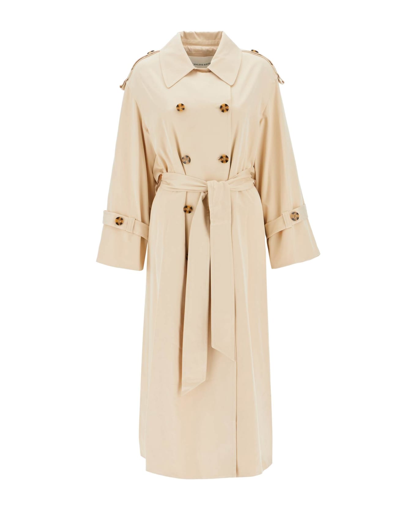 By Malene Birger trench coat crafted in viscose blend gabardine and characterized by a double-breasted design with button closure. It features notched lapel, adjustable bell sleeves with strap and buttons, side seam pockets, back flap yoke and back center vent. Cinched at waist with self-tie belt and enriched by epaulettes with button at shoulders. Lined interior with a pocket. Oversized fit with flared silhouette. The model is 177 cm tall and wears size EU 34.
