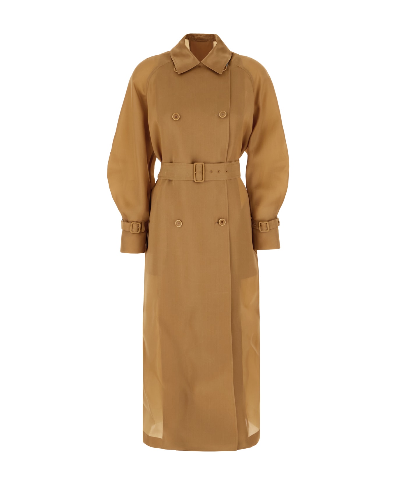 Oversize trench realized in pure silk organza characterized raglan sleeves. -Pointed collar -Buttons and decorative buttons closure -Belt loops at the waist -Detachable tonal fabric belt -Seam pockets -Adjustable straps on the cuffs -Central slit at the back -Unlined