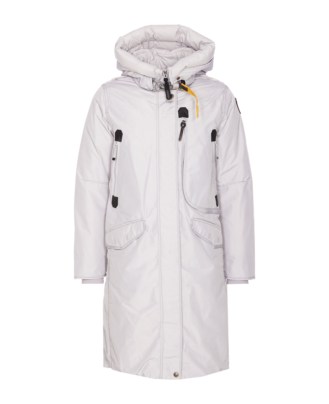 Parajumpers dawn Dilly down jacket with frontal zip and buttons closure, hood detail, hook detail on collar, long sleeves, lateral patch logo, zip pockets, long model, padded