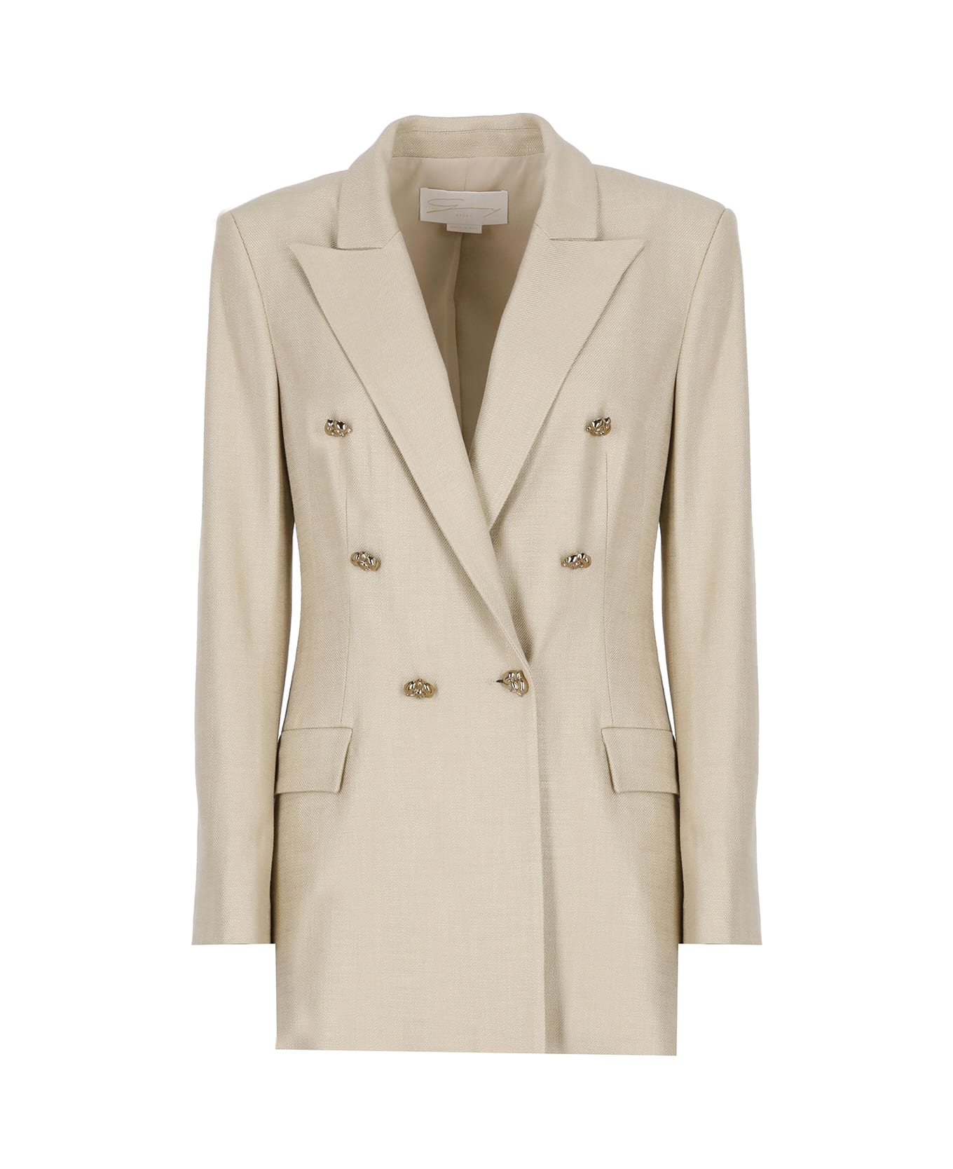 Stretch Fabric Double Breasted Blazer from Genny: - Beige Genny stretch fabric double breasted blazer for woman