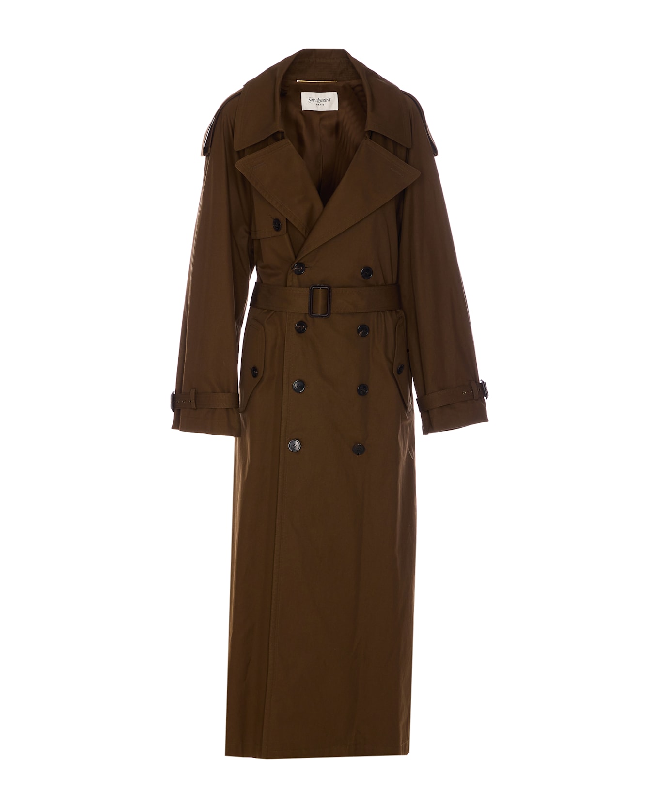 Saint Laurent ecorce trench, double breasted buttons closure, collar, strap on cuffs, pockets, belt on waist, tabs on shoulder, split on the back Composition: 100% Cotton, 100% Silk