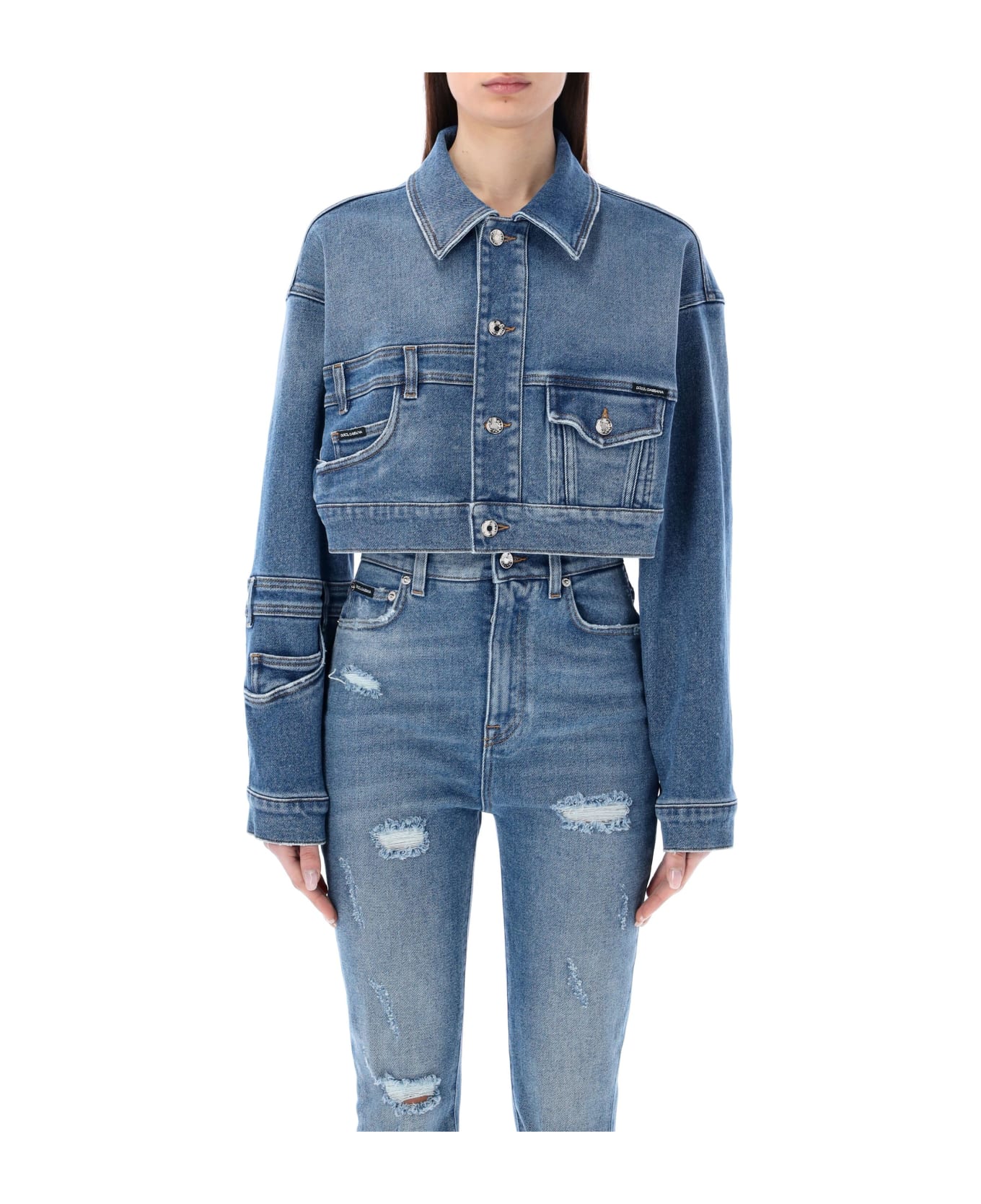 Cotton Short Patchwork Denim Jacket By Dolce&gabbana. Featuring: