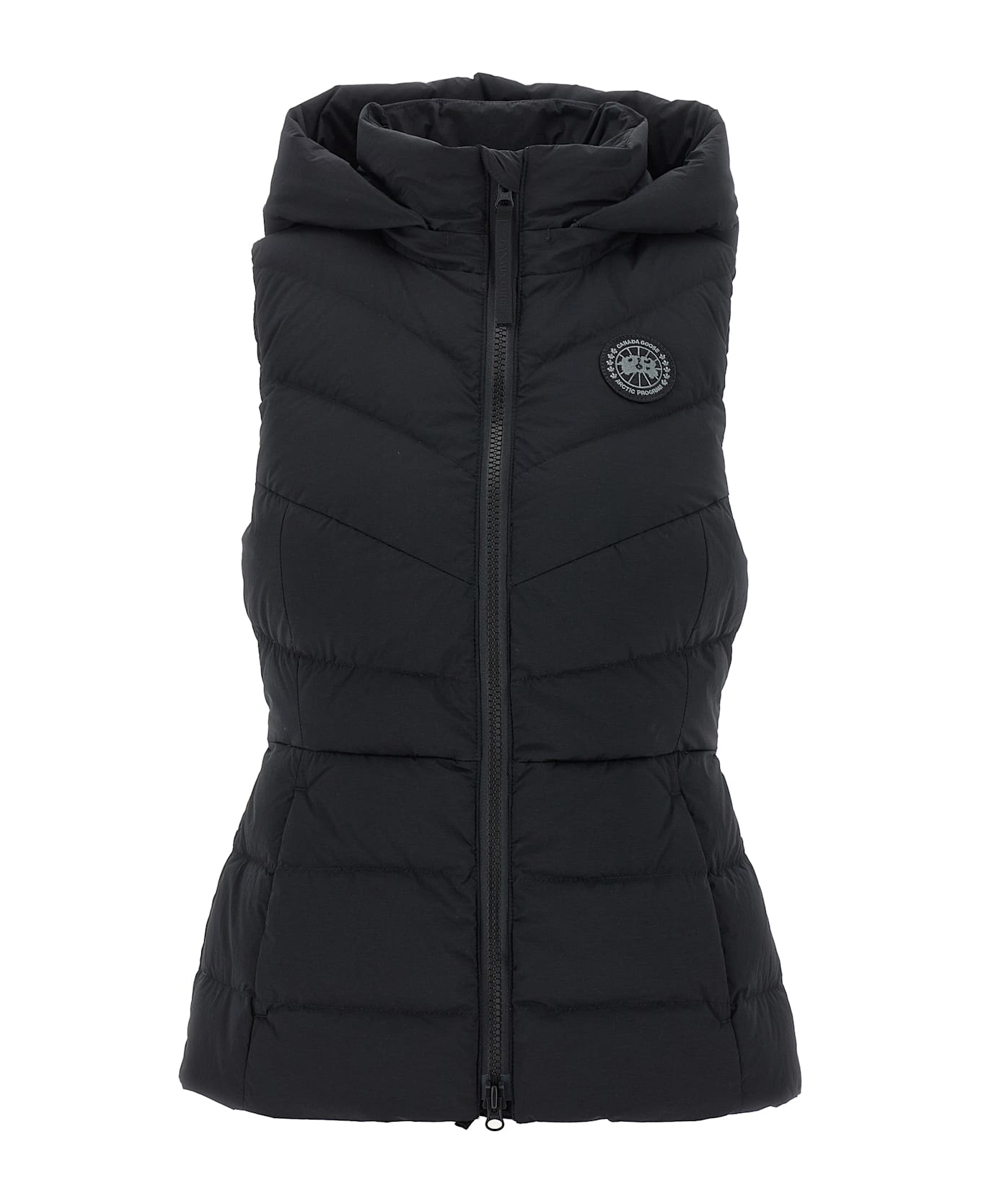 'Clair' quilted nylon vest with goose down padding, adjustable hood, tone-on-tone logo patch and front zip closure, pockets. Composition: 87% polyamide, 13% elastane