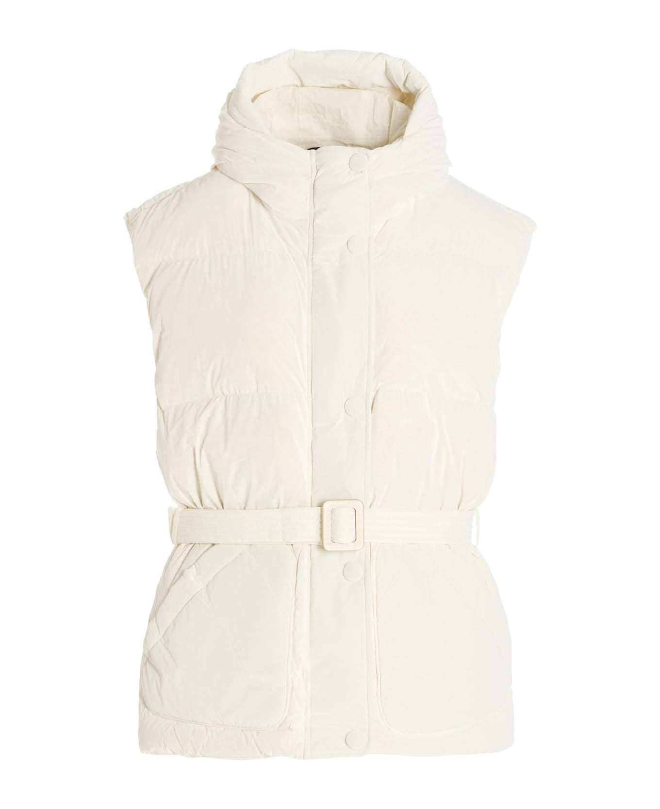 Multilin' padded vest with goose down padding, windbreaker and water fabric, pockets, removable belt at the waist, zip and button closure and a hood. Composition: 100% nylon