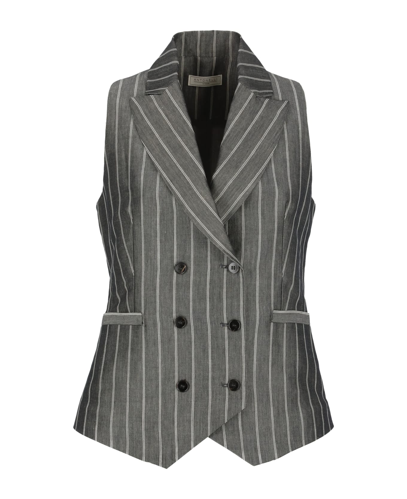 - Dark grey Antonelli Firenze linen and cotton doublebreasted vest for woman - Peak lapel collar - Sleeveless - Front buttons fastening - Two front welt pockets