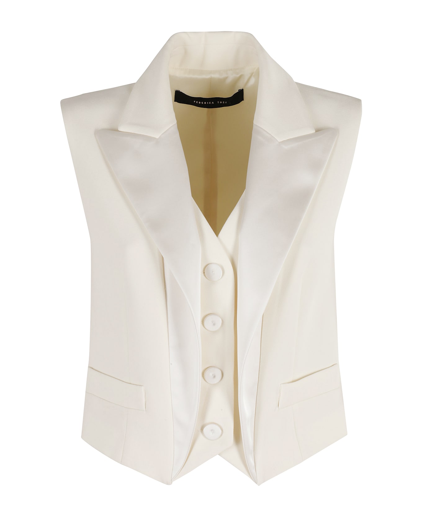 Vest - Federica Tosi - Crop model - Cady fabric - Milk white color - Sleeveless - Revers - Two faux front flap pockets - Front closure with tone on tone buttons.