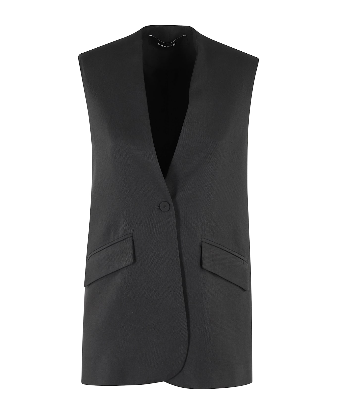 Vest - Federica Tosi - Black color - Tencel fabric - V-neck - Padded shoulder straps - Flap side pockets - Single breasted button lined closure - Regular fit.