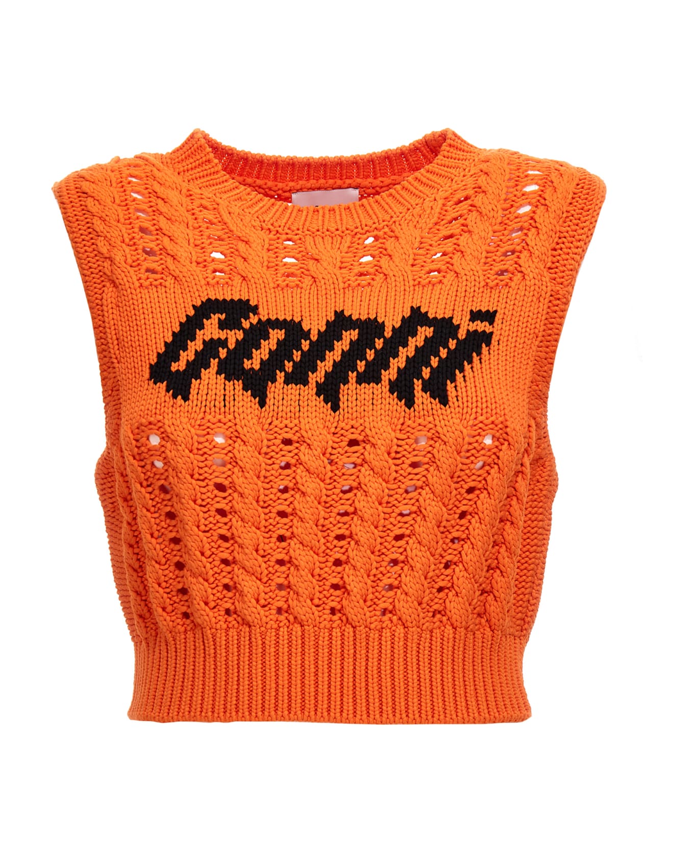 Viscose blend knit vest featuring contrast front logo and a crewneck. Composition: 60% viscose 40% polyamide