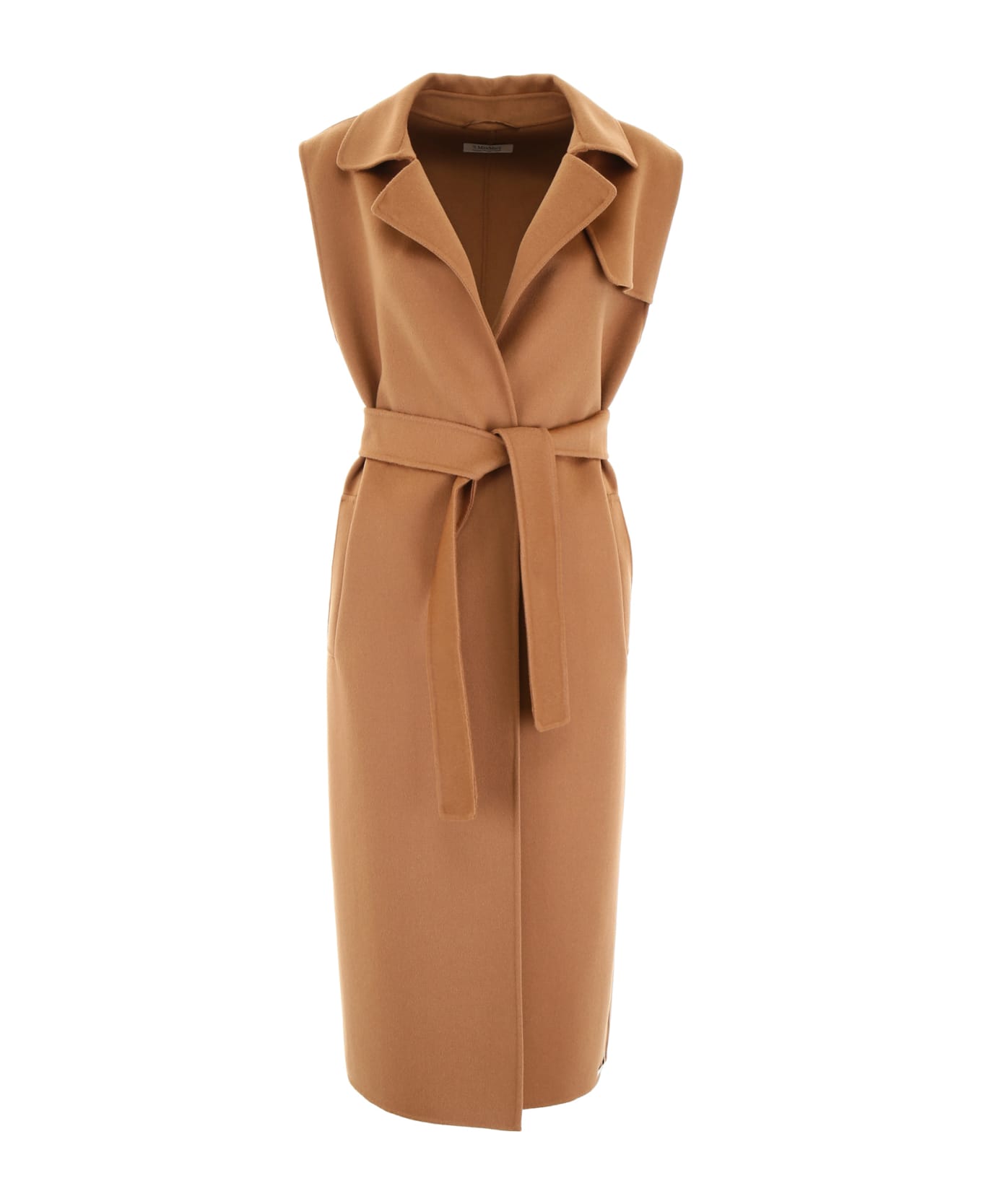 'S MAX MARA double virgin wool vest with side pockets, central back vent, self-tie waist belt. Model height is 177 cm and she is wearing a size IT 38. Composition: 100% lana