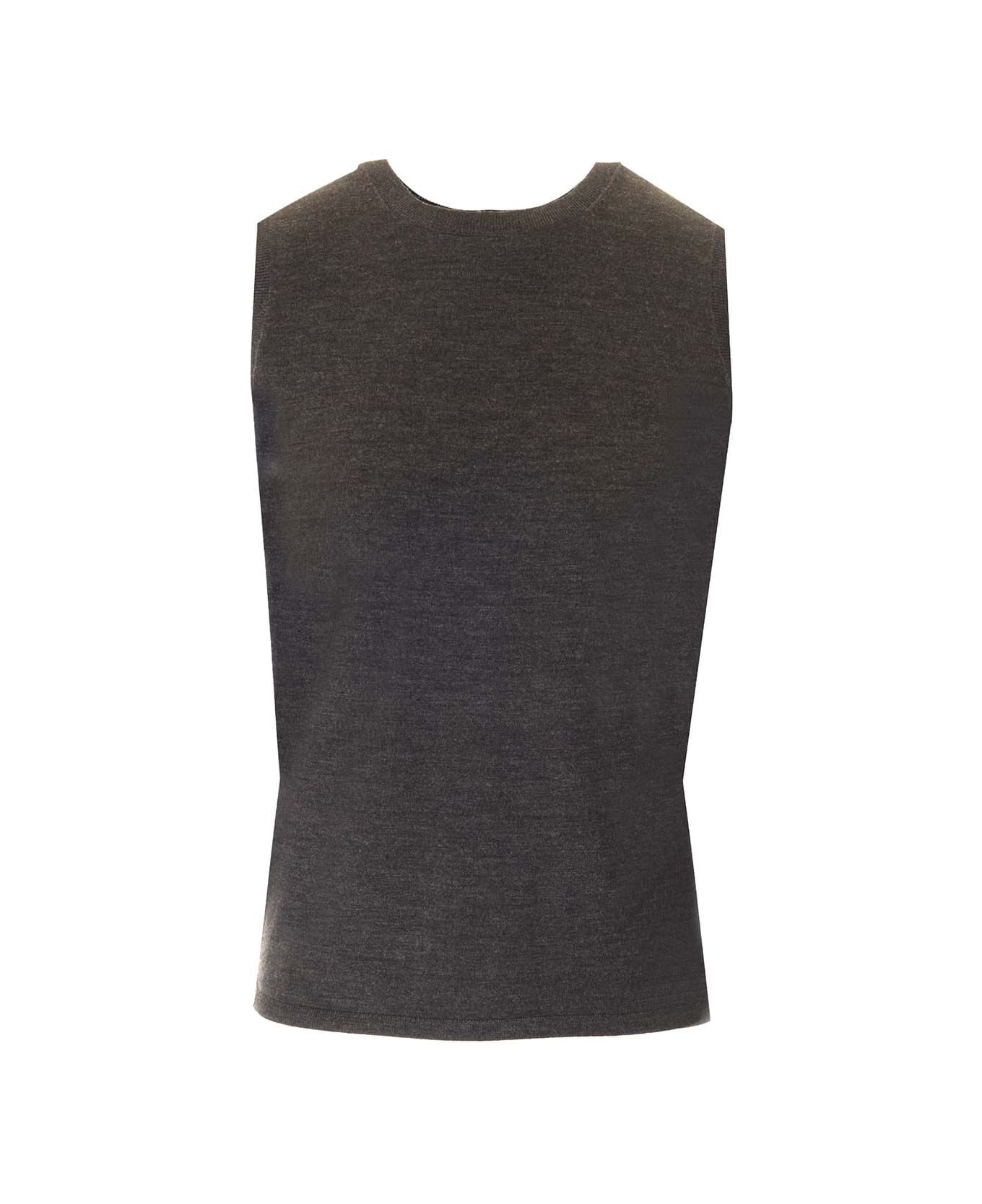 Sleeveless merino wool top from Theory with round neckline and ribbed trim.