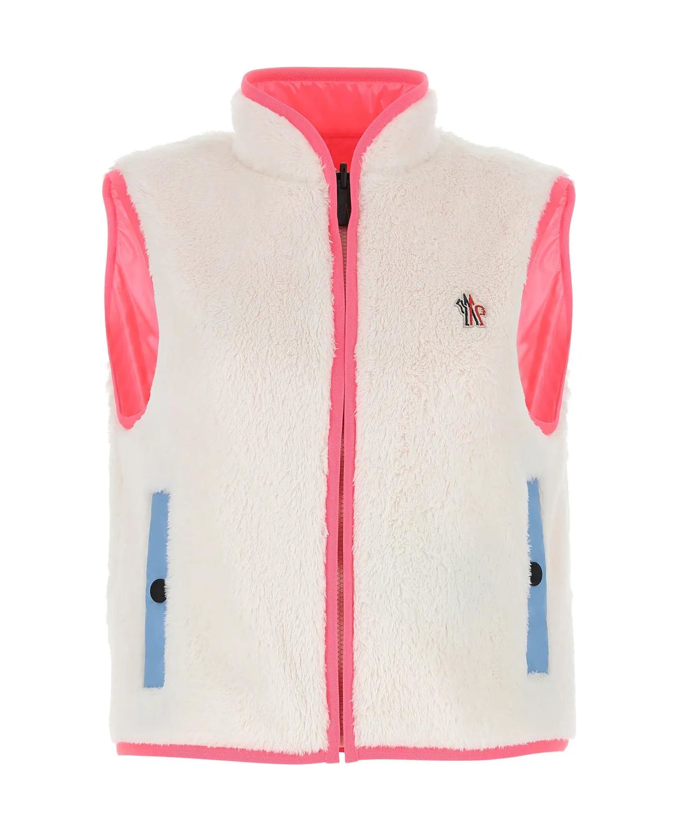 Reversible sleeveless jacket realized in eco fur enriched by logoed patch on the chest. - High neck - Concealed zip and buttons closure - Two slit pockets at the front - Contrasting interior with logoed patch and two slit pockets Composition: Exterior: 97% Polyester 3% Elastane Lining: 100% Polyester