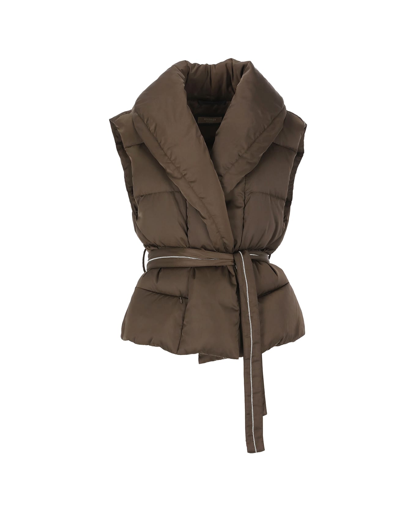 - Brown Peserico husky for woman - High neck - Sleeveless - Front stud buttons fastening - Two front zip pockets - Matching belt included Composition: 100% Polyester Lining:, 100% Polyamide Padding:, 90% Goose Down, 10% Goose Feathers